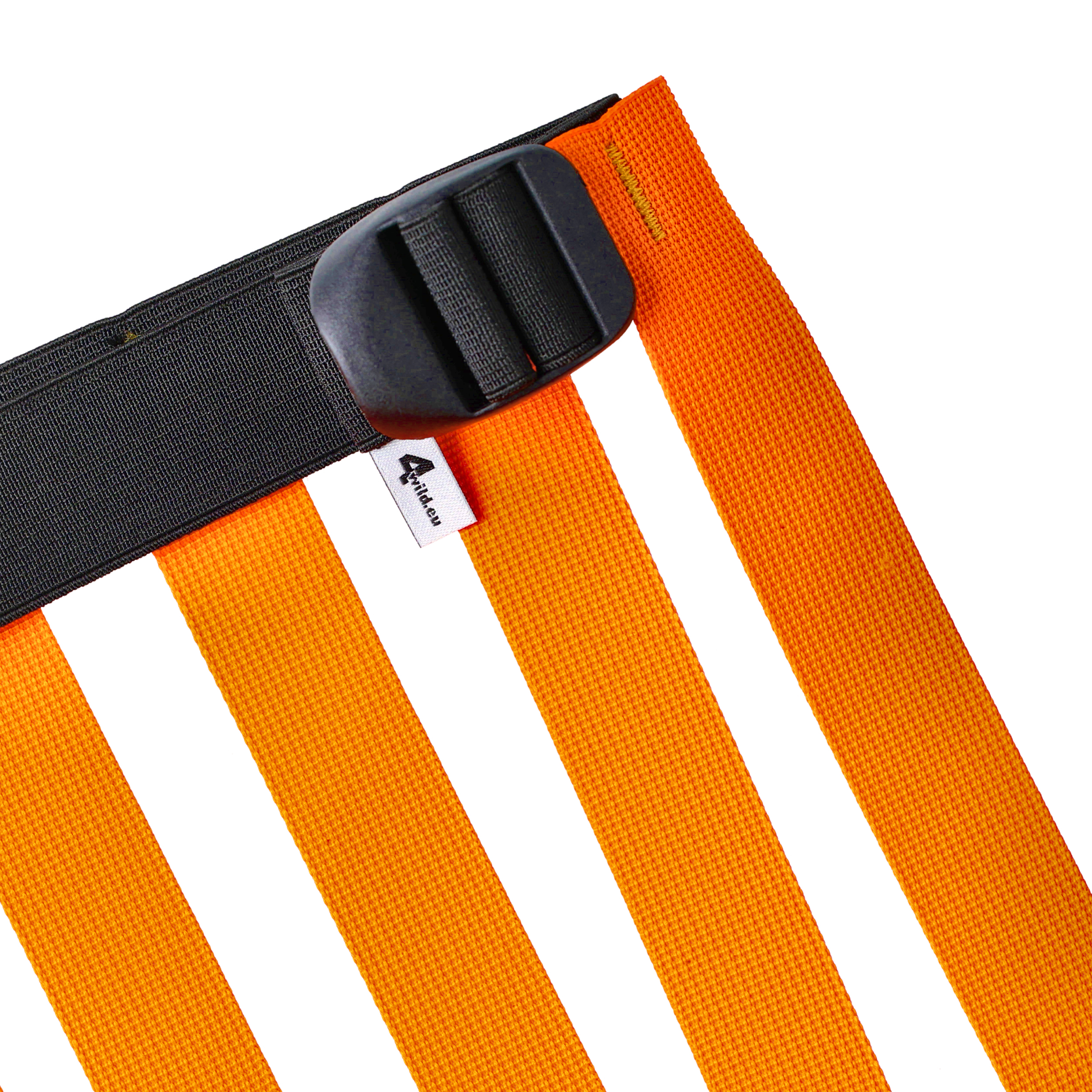 - Wyposażona w osiem fladr o długości 20 cm i szerokości 25 mm, wykonanymi w intensywnym neonowym pomarańczowym kolorze