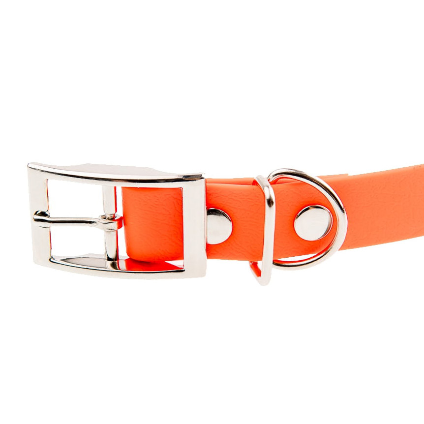 Obroża jest wykonana z grubej taśmy, co zabezpiecza przed zerwaniem i zagubieniem zwięrzęcia. Ta cecha jest szczególnie ważna gdy mamy do czynienia z psami myśliwskimi, aktywnymi sportowo lub w treningu posłuszeństwa. Zastosowana taśma jest odporna na działanie promieni UV. Obrożę można czyścić pod bieżącą wodą przy użyciu domowych środków czyszczących i szczoteczki, jej gładka powierzchnia sprawia, że po zabiegu czyszczenia obroża wygląda jak nowa. Zakres regulacji obwodu obroży to 28-38 cm.