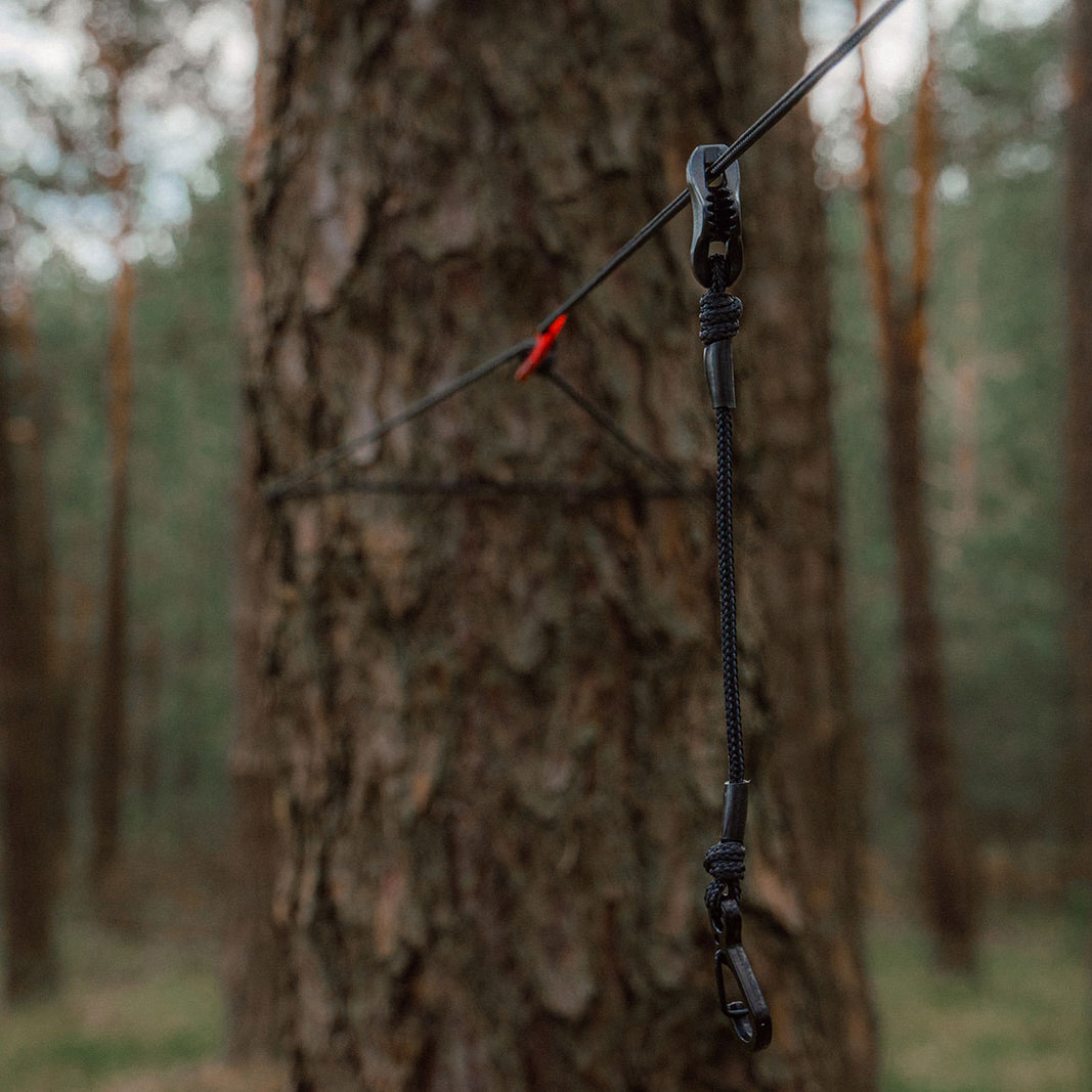 System szybkiego rozwieszania tarpa TigerWood Silk umożliwią Ci pozbawione użycia jakichkolwiek węzłów rozpięcie płachty biwakowej pomiędzy drzewami. Oparty na niezwykle wytrzymałych oraz niepodatnych na wpływ wilgoci linkach system doskonale sprawdzi się w trudnych warunkach atmosferycznych, gwarantując niezawodność, gdziekolwiek się nie znajdziemy. Dzięki zastosowaniu przesuwnych klamer TigerWood Silk zagwarantuje nam optymalne napięcie tarpa, natomiast 7 metrów linki zagwarantuje możliwość rozpięcia nawet pomiędzy odległymi drzewami.