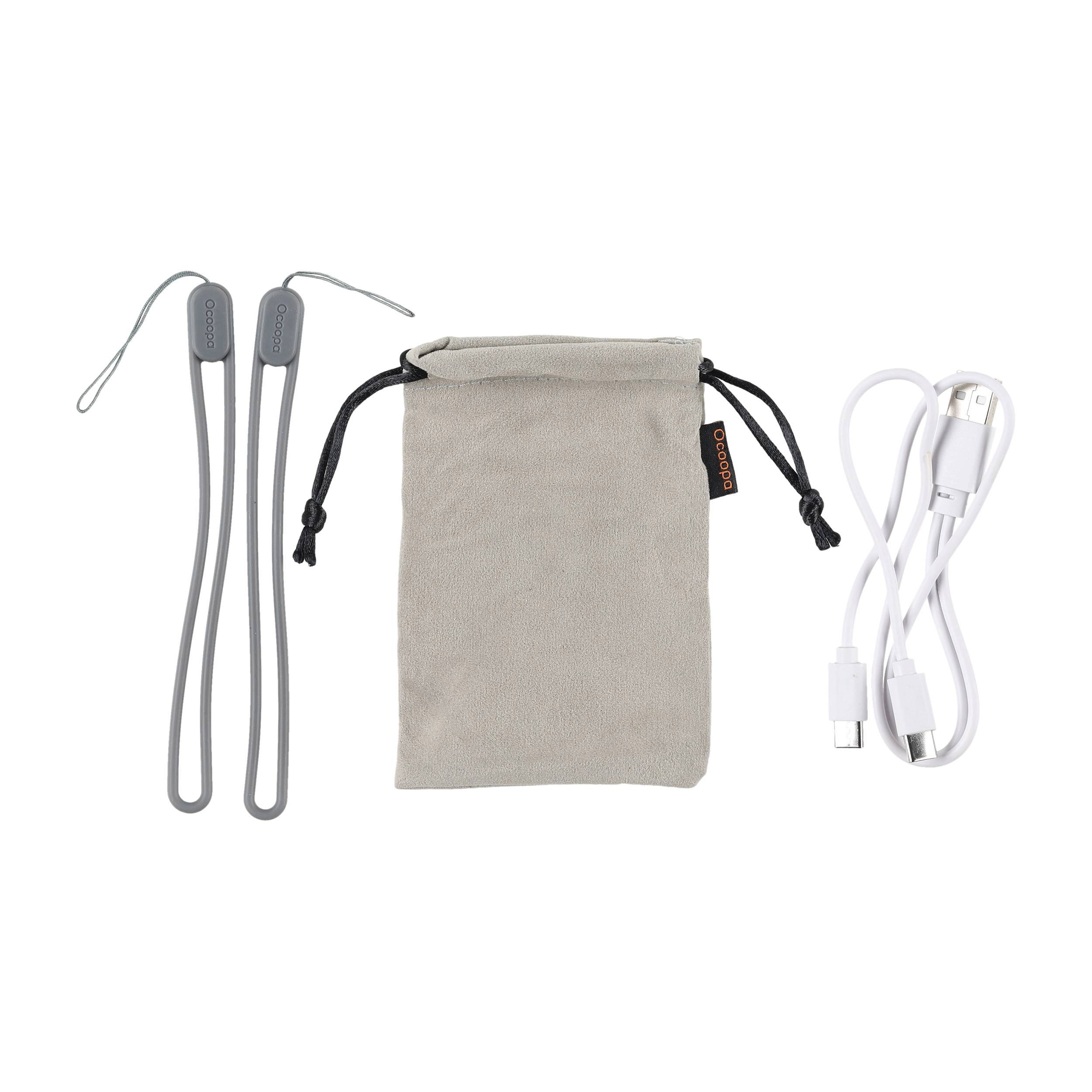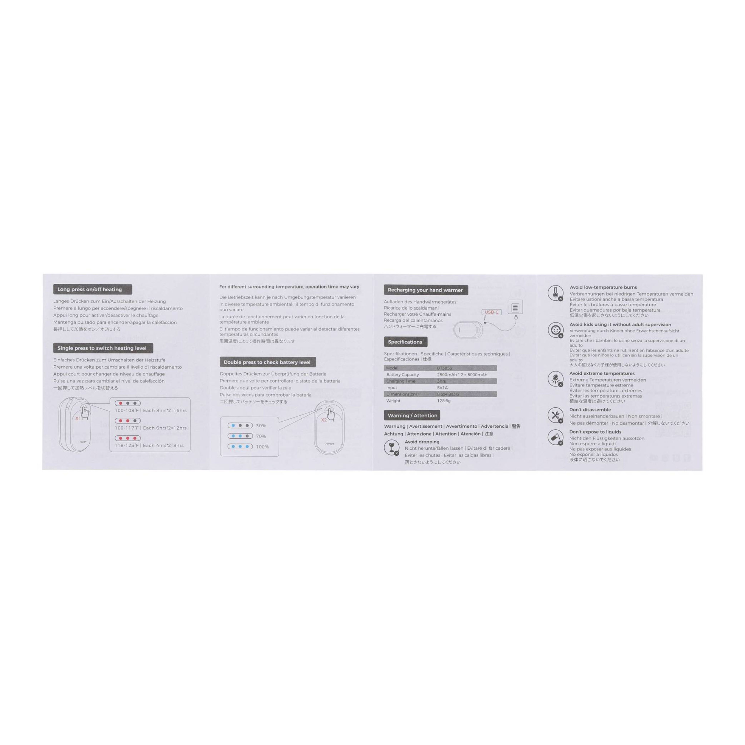 W zestawie: 2 x ogrzewacz do rąk, pasek na nadgarstek, etui, kabel ładowania, instrukcja obsługi.