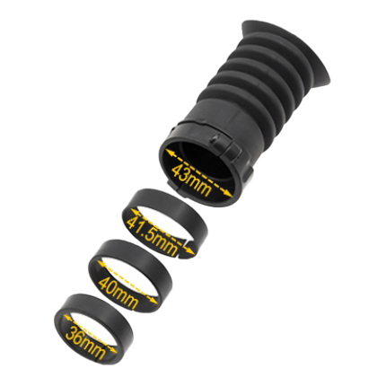 Profesjonalna guma na okular lunety znacznie pomaga w celowaniu początkującym jak i zaawansowanym strzelcom. Zrobiona z dobrej jakościowo gumy. Specjalna budowa (harmonijka) amortyzuje uderzenie w oko przy strzale. Dołączone adaptery czynią z niej uniwersalną dla większości lunet. Średnica wewnętrzna (na okular): 36 mm, 40 mm, 41,5 mm, 43 mm