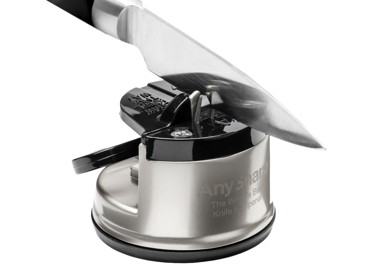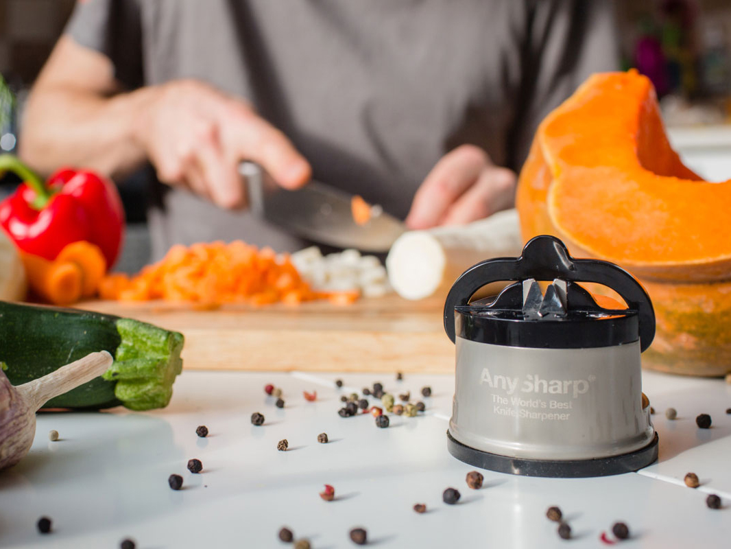 AnySharp Pro srebrna to jedna z najprostszych i najbardziej uniwersalnych ostrzałek na świecie, umożliwiająca ostrzenie noży z ostrzami gładkimi oraz ząbkowanymi.