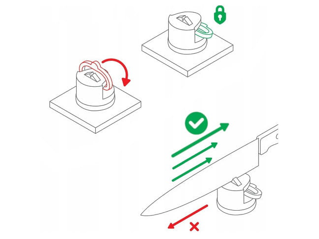 Wygodę użytkowania ostrzałki AnySharp zapewnia podstawa z mocną przyssawką próżniową, która pozwala na stabilne przytwierdzenie osełki do gładkich powierzchni szklanych, metalowych, ceramicznych i plastikowych.