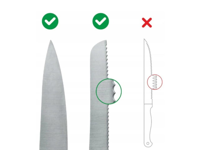Za pośrednictwem jednej ostrzałki można naostrzyć zarówno noże z ostrzem gładkim, jak i ząbkowanym* (wyłączając noże z drobnymi ząbkami do steków).