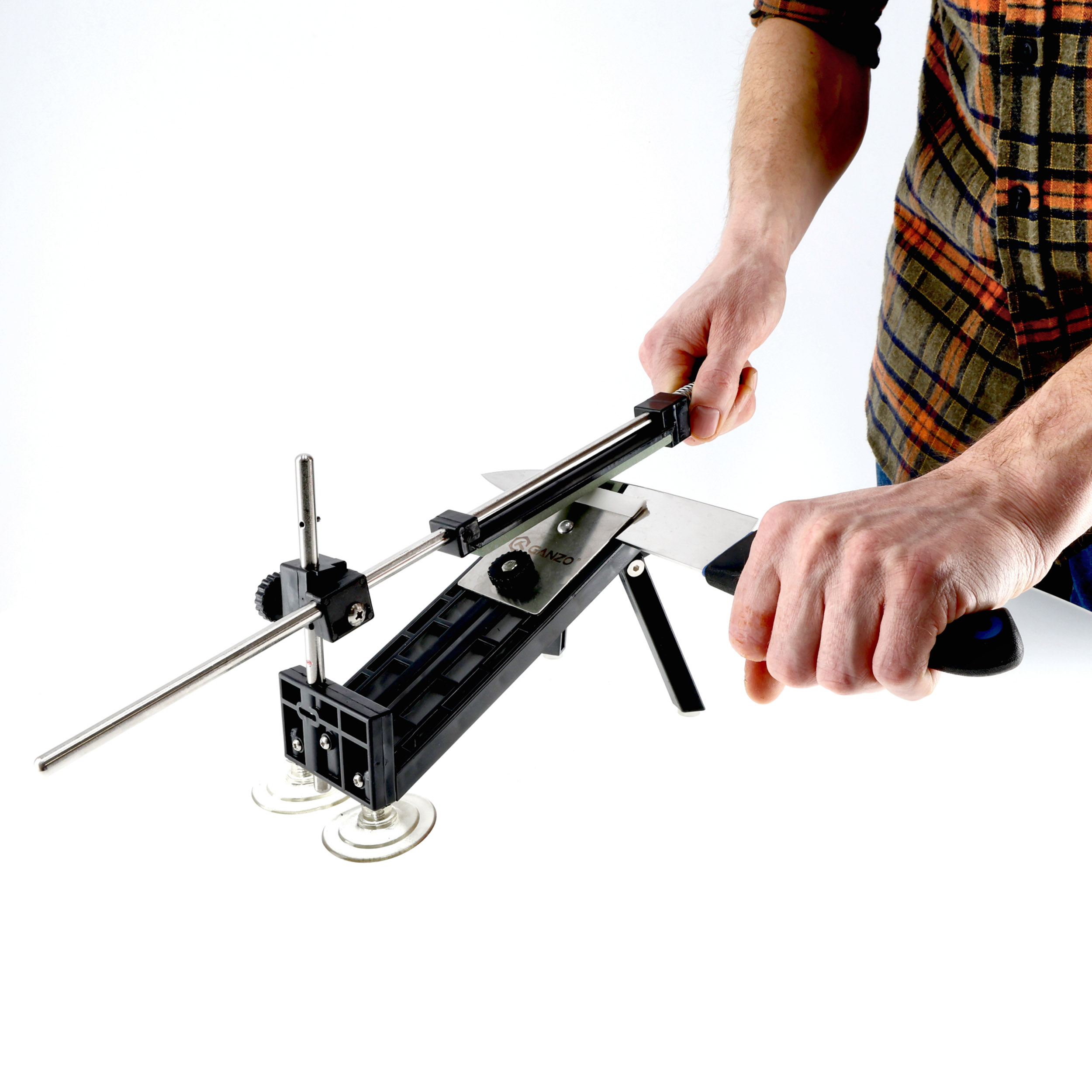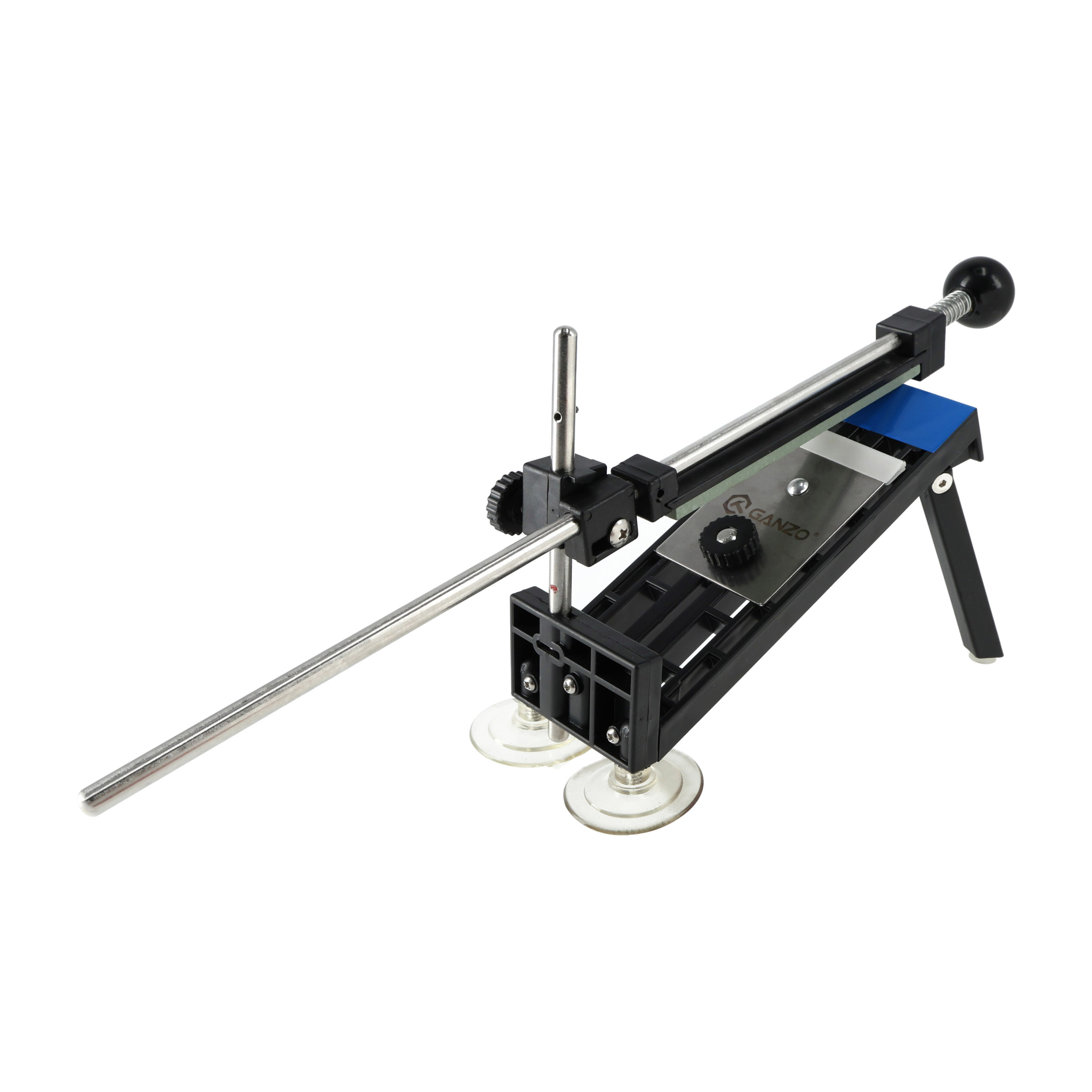 Model Ganzo Touch Pro to podstawowy model systemu ostrzącego w którym podstawa mocowana jest do podłoża za posrednictwem przyssawek i wysuwanych z korpusu nóg.