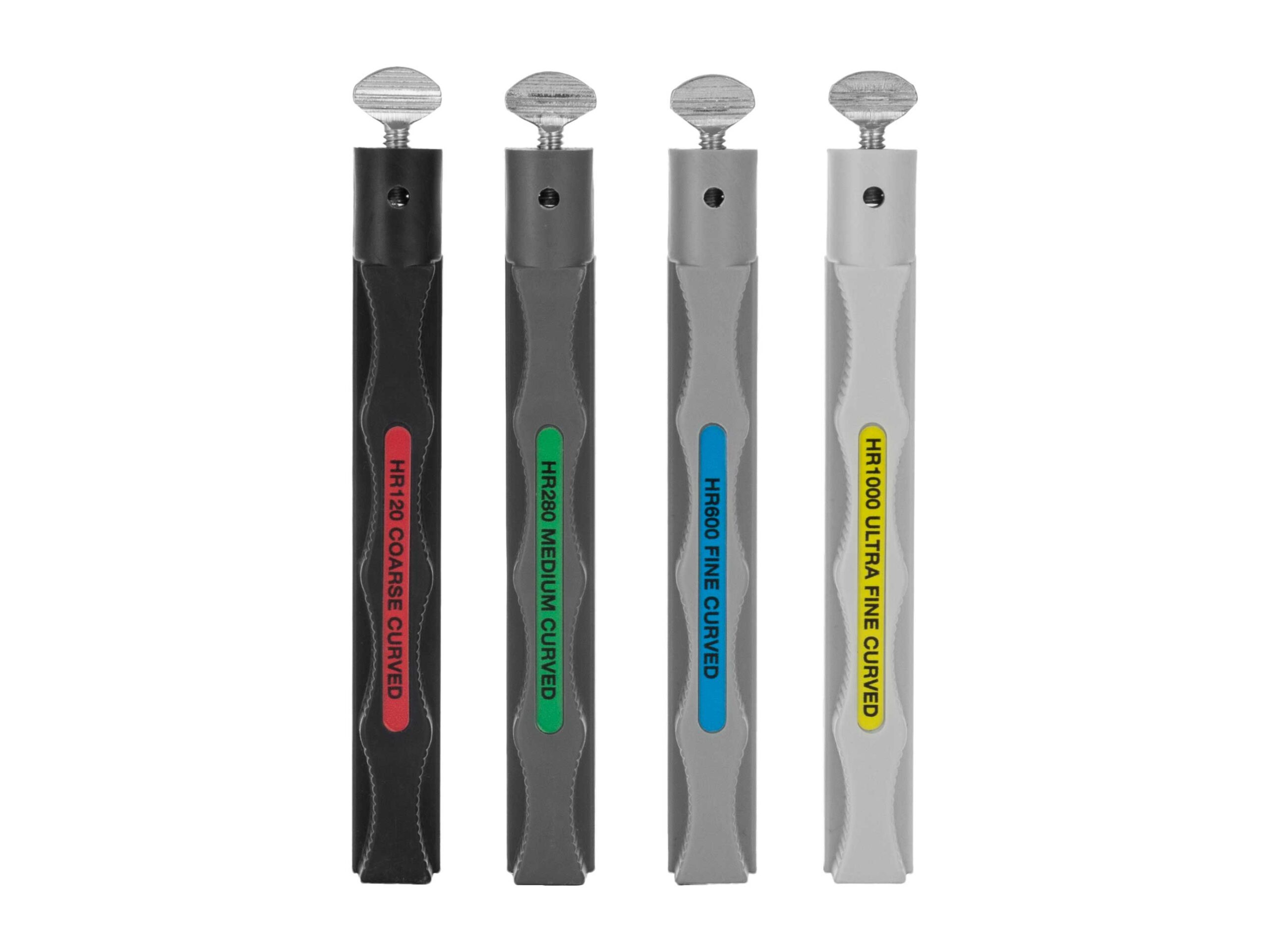 Lansky Curved Blade Hones HRSET 4 szt. to zestaw kamieni specjalnie zaprojektowanych do ostrzenia noży o krawędzi zakrzywionej do wewnątrz, np. kukris, karambits, hawkbills i kos.