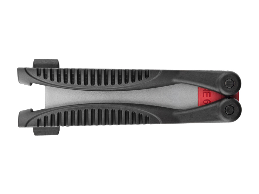 Ostrzałka ma składaną konstrukcję wzorowaną na nożach typu motylek, dzięki czemu możemy ją wygodnie przenosić i szybko rozkładać w razie potrzeby.
