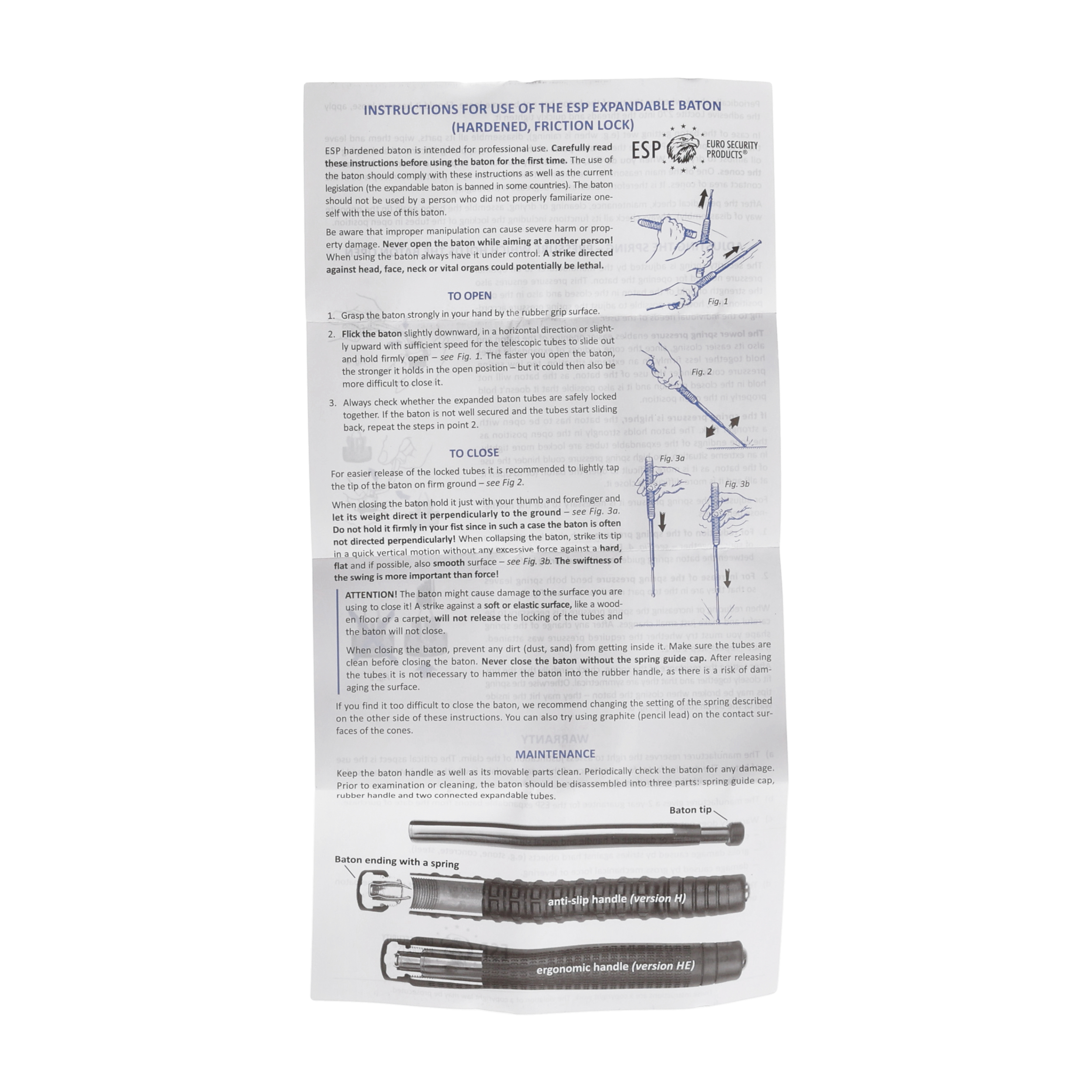 Pałka teleskopowa o długości 18 cali wykonana z hartowanej stali oksydowanej na czarno. To jedno z najbardziej skutecznych narzędzi w obronie koniecznej i awaryjnych sytuacjach. Skonstruowana z trzech stalowych prętów zahartowanych do twardości 40-50 HRC. Powłoka z oksydy o dużej odporności na ścieranie. Rękojeść z elastycznego tworzywa o antypoślizgowej fakturze uniemożliwia odebranie pałki przez napastnika. Obrotowa kabura z otworem na pas umożliwia przenoszenie w stanie złożonym, lub rozłożonym.
