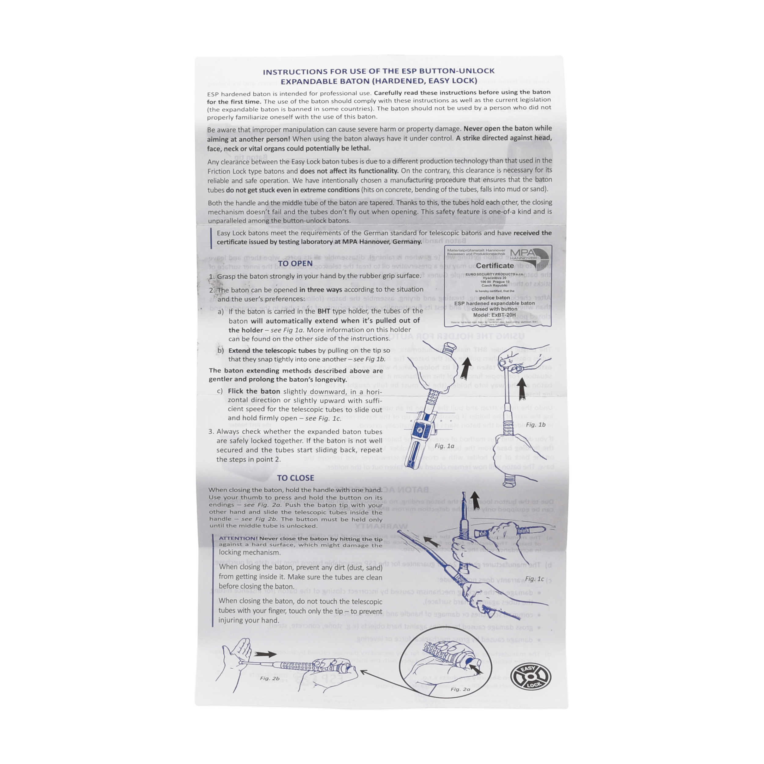 - System Easy Lock: Innowacyjny system blokowania pozwala na szybkie i łatwe złożenie pałki jednym ruchem.