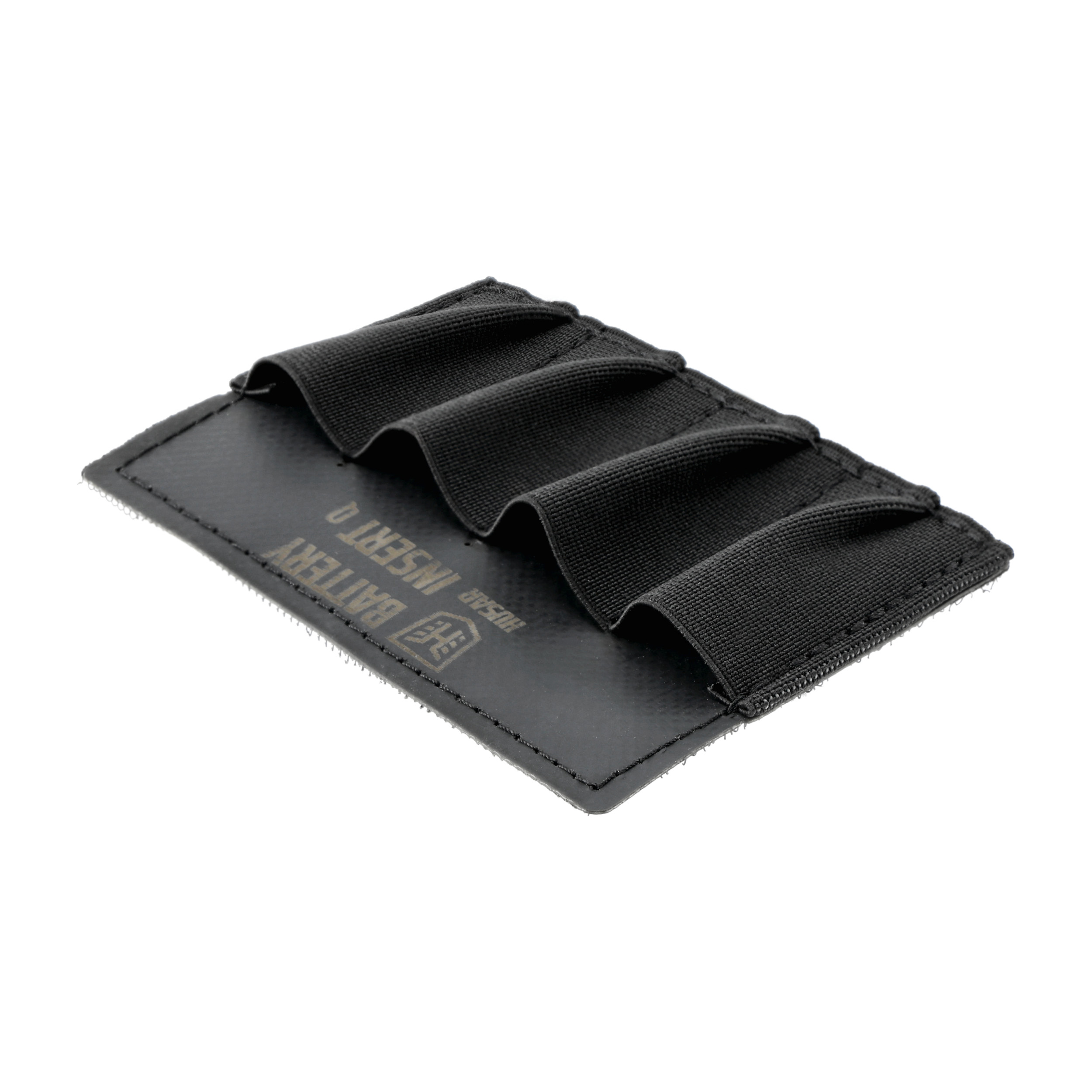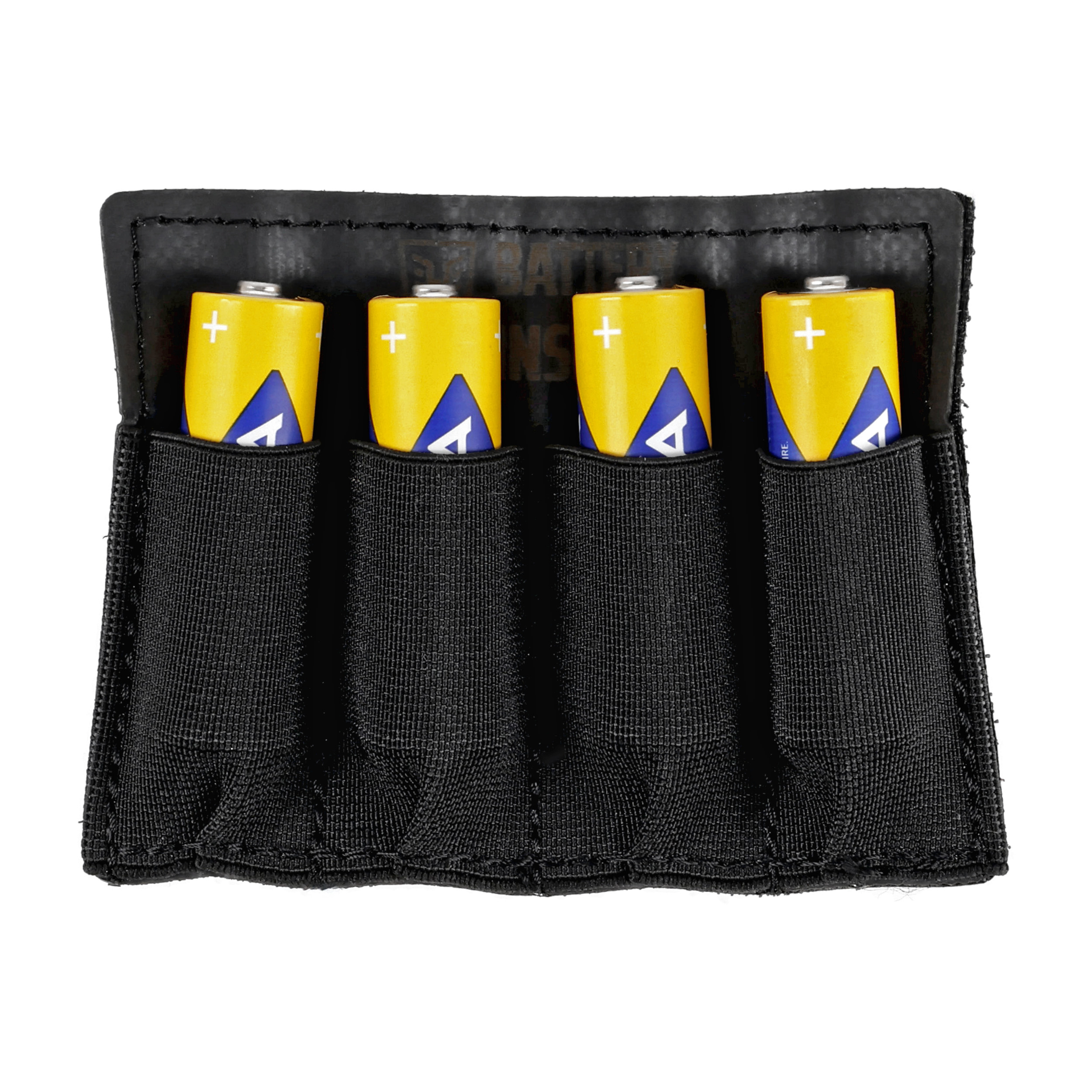 Wytrzymały panel organizacyjny na 4 baterie mocowany za pomocą rzepa haczykowego (velcro loop) to poczwórna wkładka na baterie, szeroka na 100 mm, z zamkniętym dnem, przeznaczona do przechowywania baterii typu CR123, AA, AAA, 18650 lub innych przedmiotów o podobnych rozmiarach.