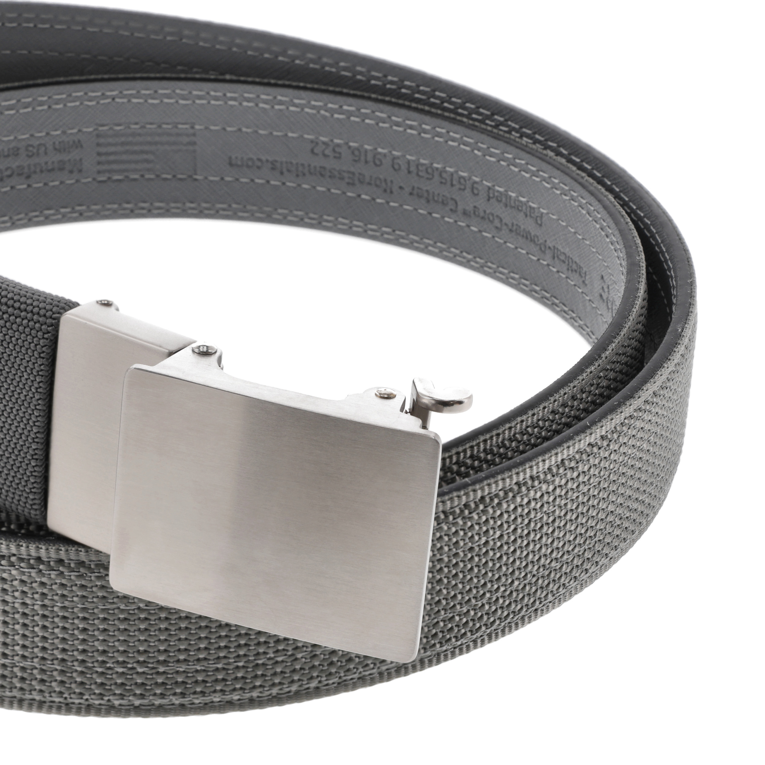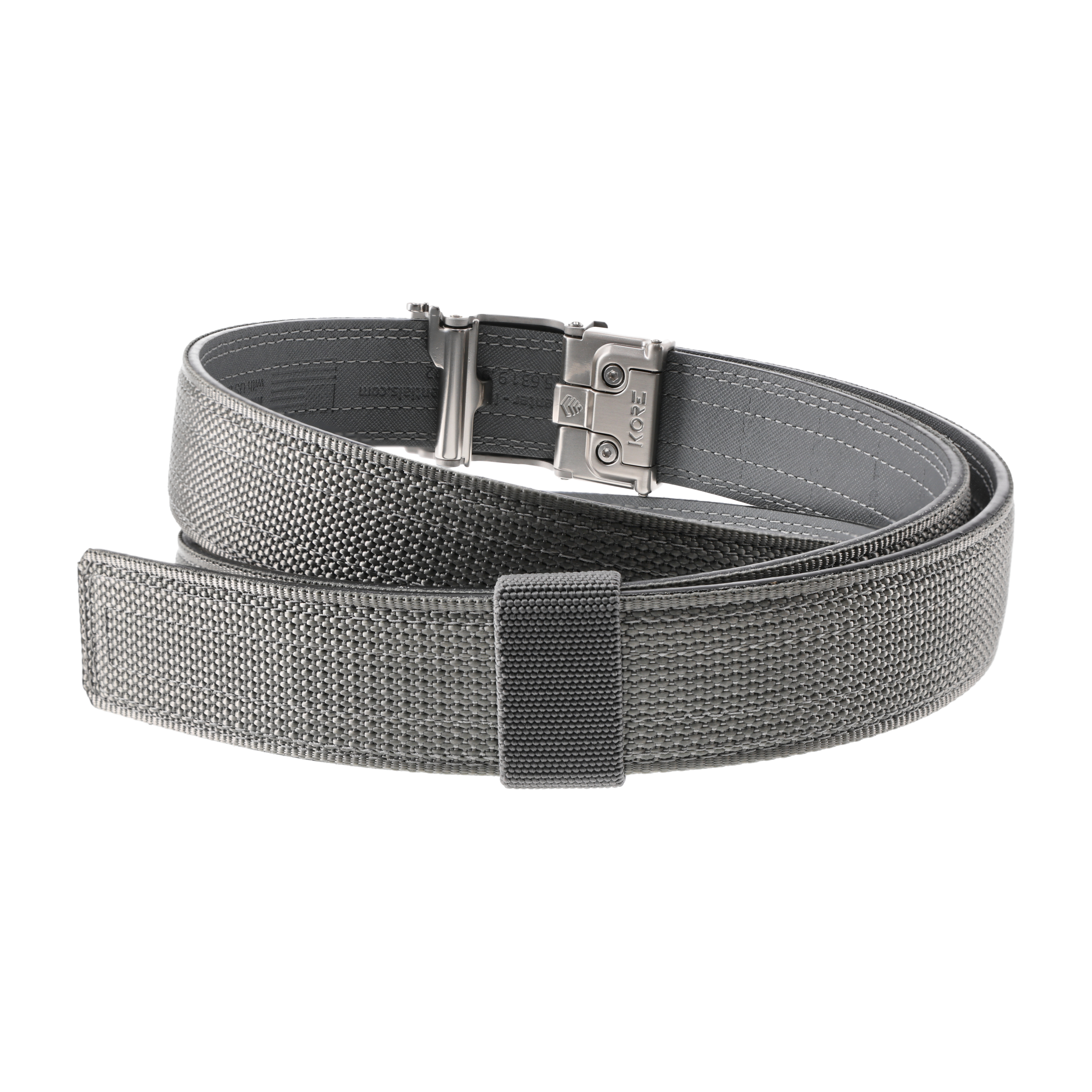 KORE Essentials X4 z tworzywa szary to wygodny i niezwykle solidny pas do codziennego noszenia broni, który, w odróżnieniu od typowych pasów taktycznych nie przyciąga uwagi i doskonale pasuje do codziennego stroju. Nylonowy pas Kore ma sztywną konstrukcję ze wzmacnianym rdzeniem Power-Core oraz możliwość precyzyjnej regulacji długości w ponad 40 pozycjach.