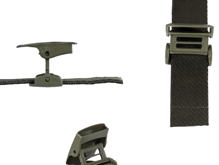 Pas wykonano z syntetycznej taśmy (100% polipropylenu) o dużej rozciągliwości i wytrzymałości mechanicznej. Pas Mil-Tec ma kompozytową klamrę z zapięciem zatrzaskowym typu Quick Release, które pozwala na błyskawiczne odpięcie oraz łatwą regulację długości.