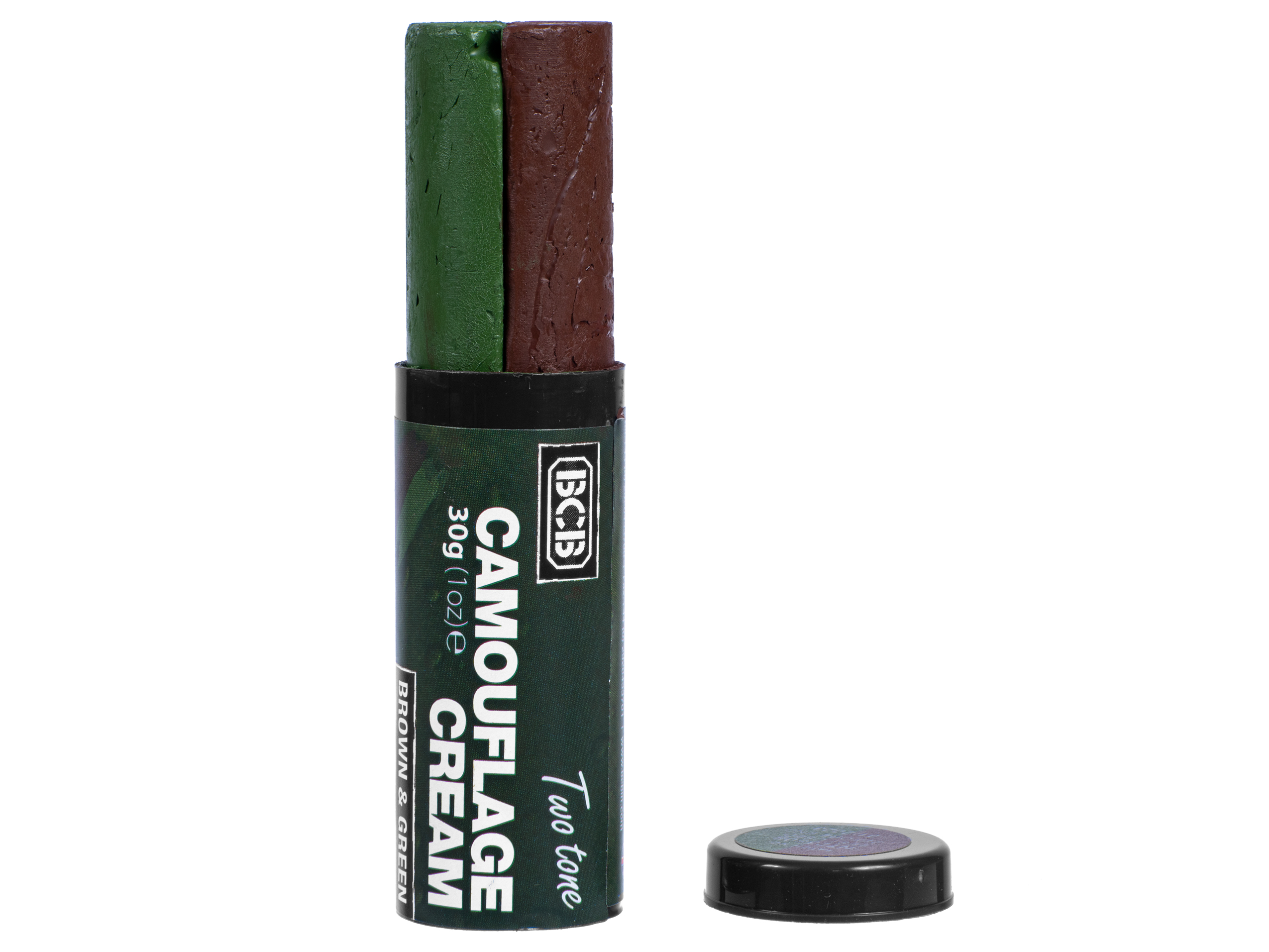 Pasta, farba do kamuflażu BCB 2-kolorowa w sztyfcie to wojskowa farba do maskowania twarzy i ciała w europejskich warunkach geograficznych.