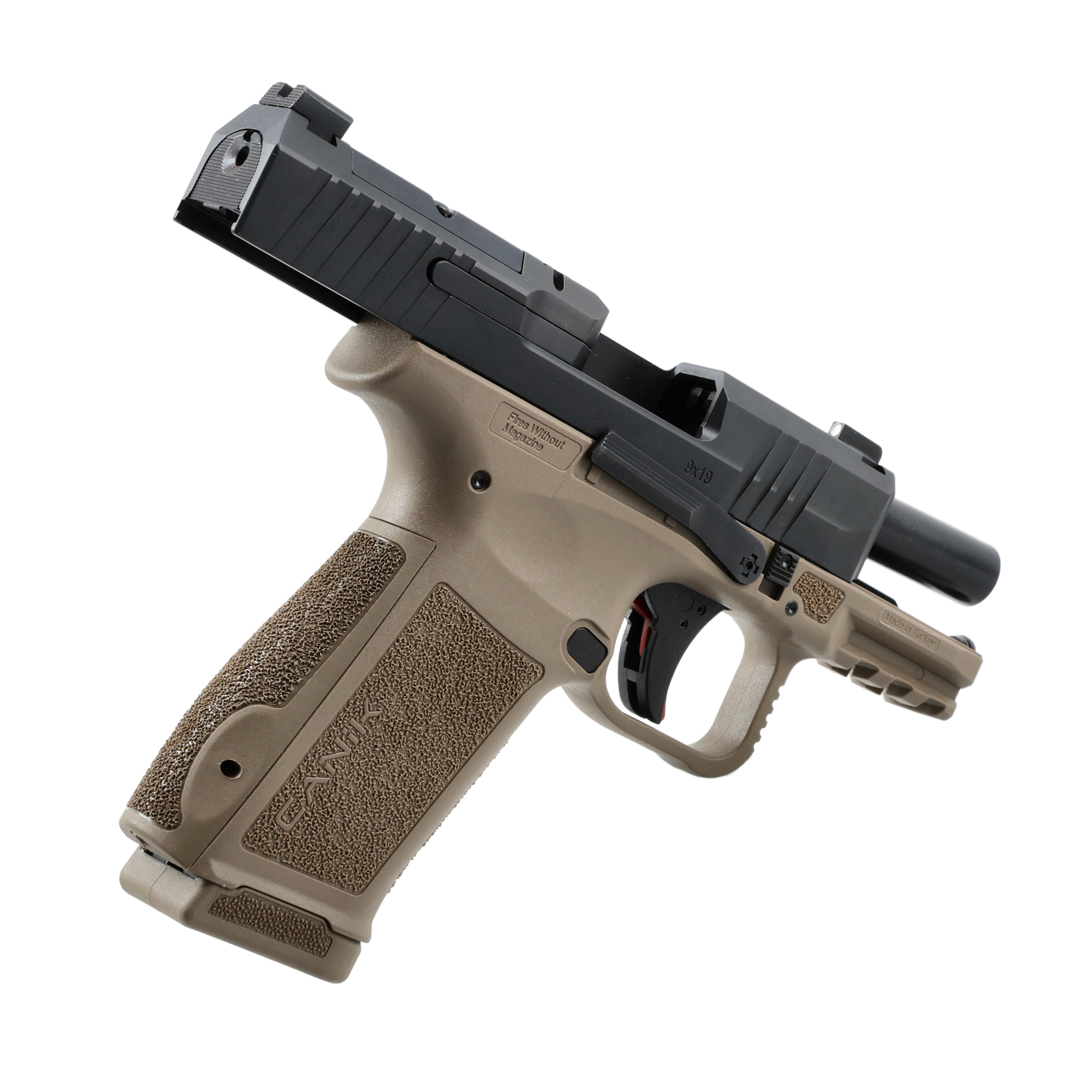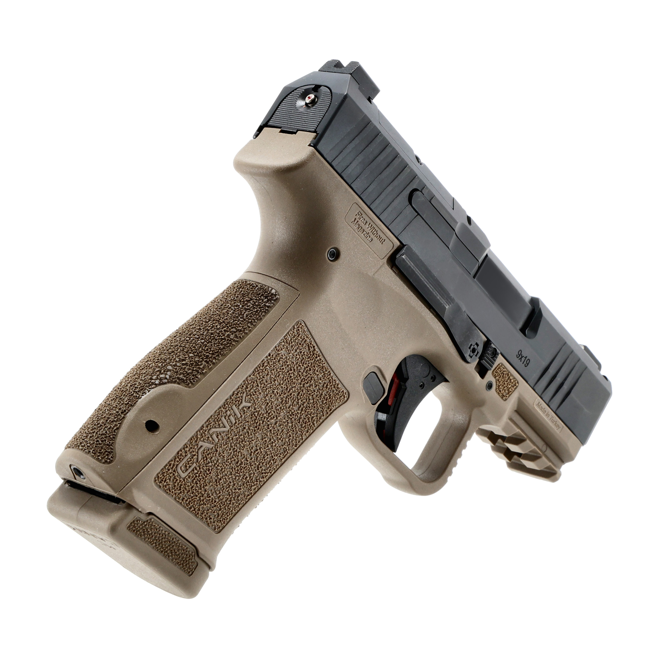 Pistolet Canik METE MC9 L 9 × 19 mm zaprojektowany z myślą o skrytym przenoszeniu, co oznacza, że priorytetem stała się ergonomia oraz wygoda użytkowania. Konstrukcja oparta na polimerowym szkielecie z wytrzymałym wykończeniem Cerakote, zapewniającym ochronę przed korozją i czynnikami atmosferycznymi, sprawia, że broń doskonale sprawdzi się w codziennym użytkowaniu EDC (Every Day Carry). Model w kolorze FDE (Flat Dark Earth).