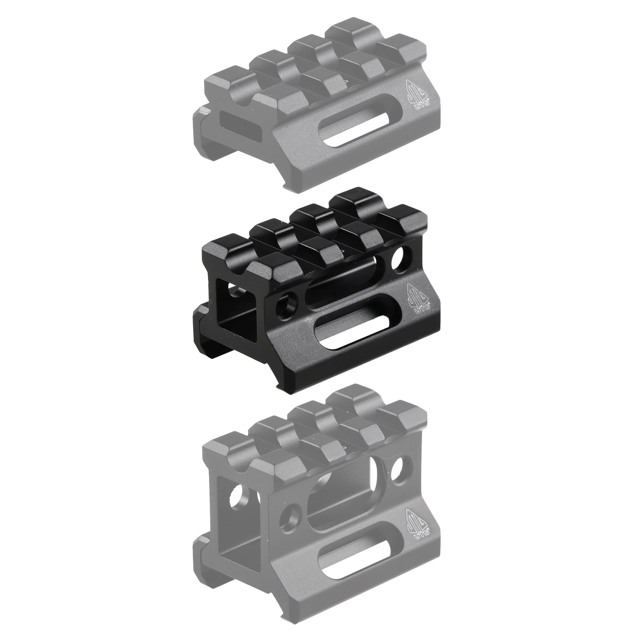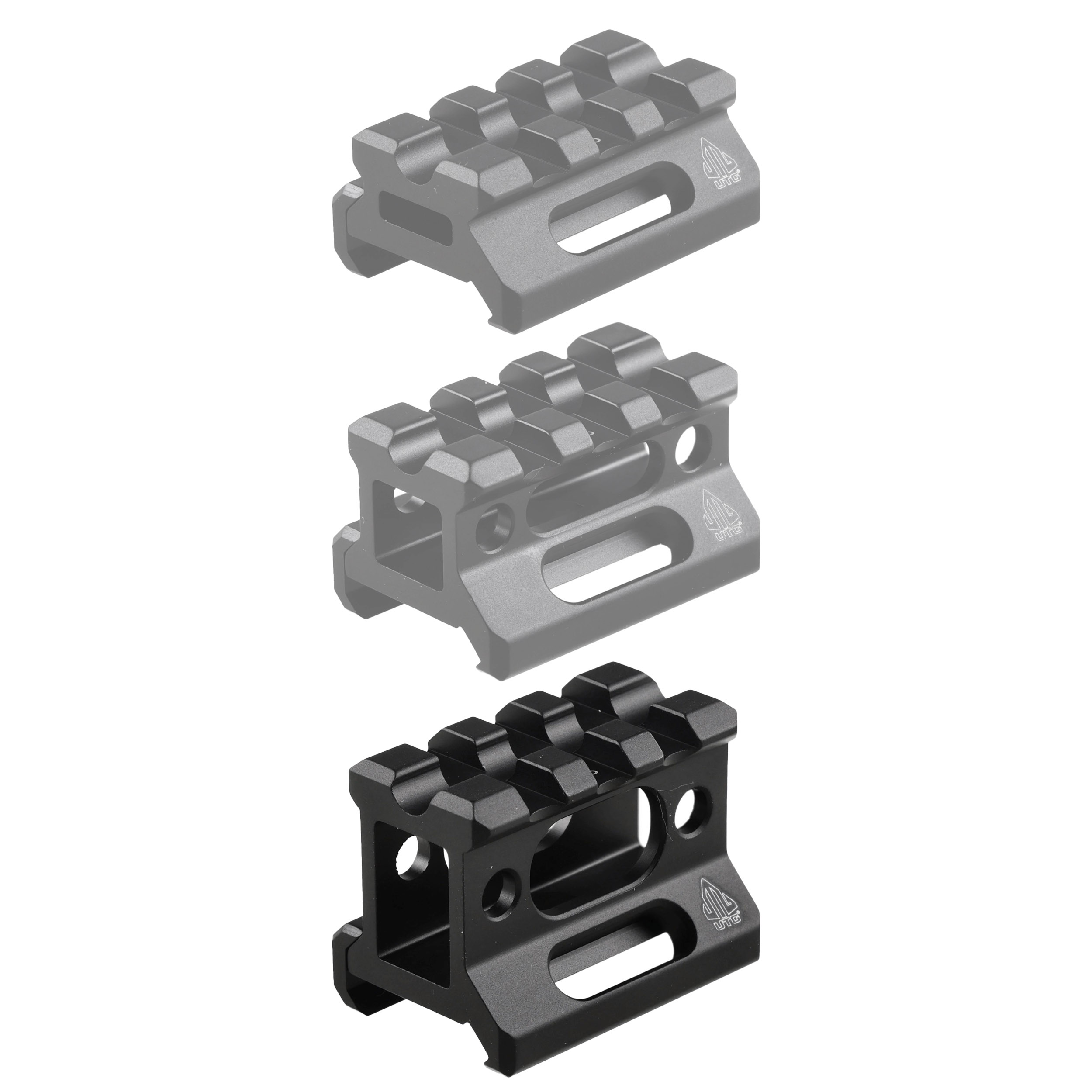 Podwyższenie Leapers to kompaktowa szyna podwyższająca o 3 gniazdach, mocowana bezpośrednio na szynie Picatinny.