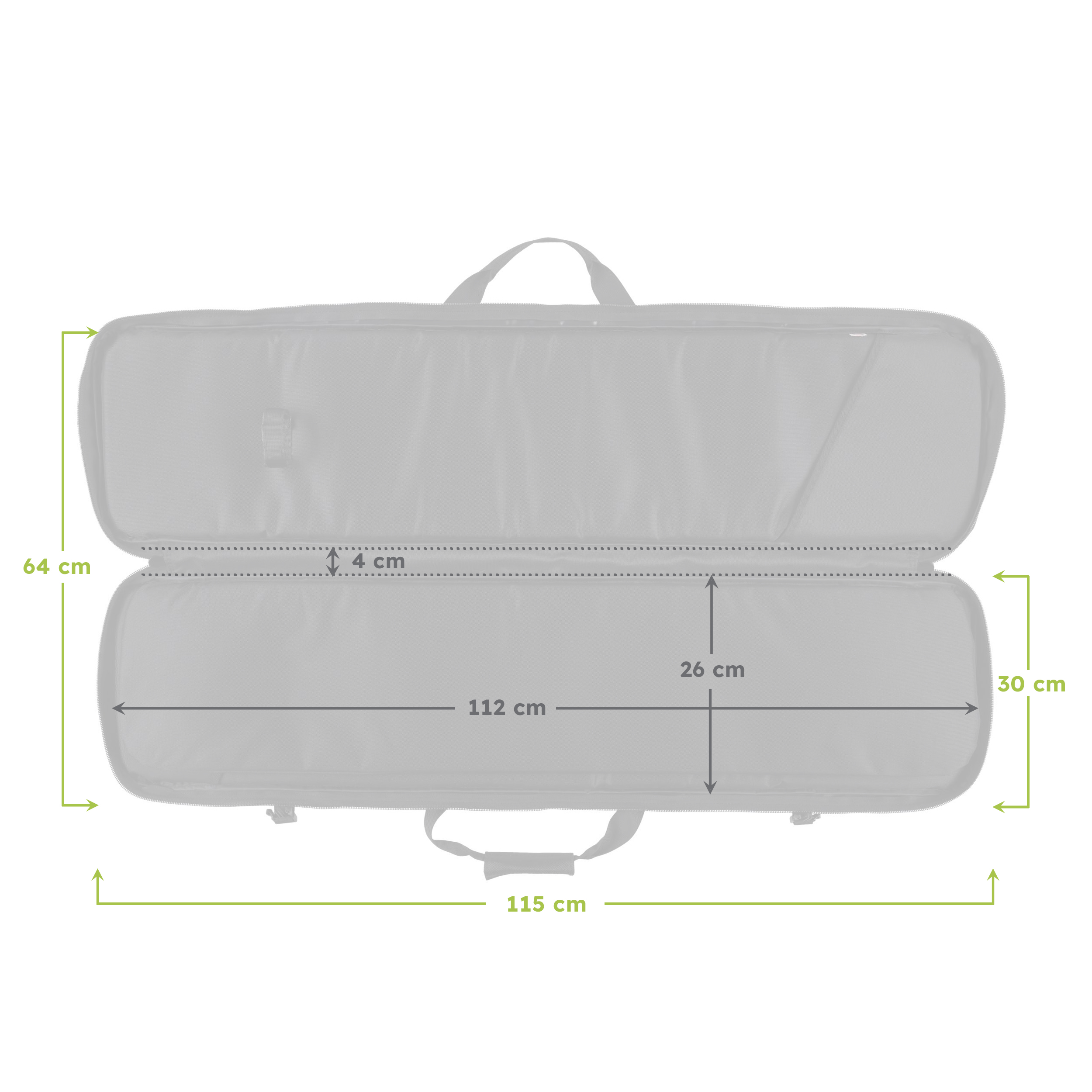 - Wymiary wewnętrzne pokrowca: 112 × 26 × 4.