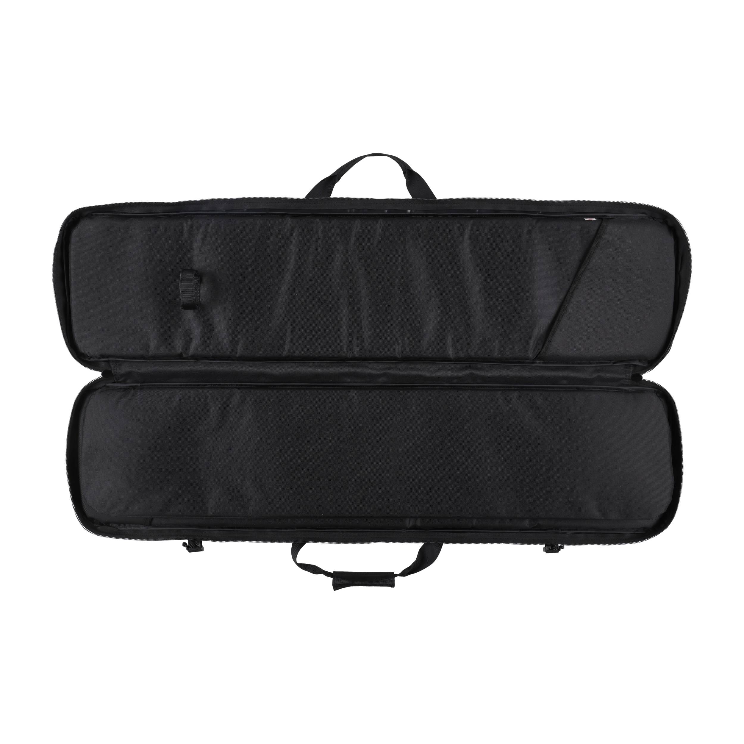 Pokrowiec ma 2 komory o wymiarach ok. 115 × 30 cm, która idealnie pomieszczą się karabinek AR-15/Ak, strzelbę oraz sztucer z optyką. Do stabilizacji broni zastosowano nylonową taśmę zapinaną na fastex. We wnętrzu pokrowca znajduje się płaska kieszeń (np. na tłumik). Do transportu służą podwójny chwyt oraz szerokie szelki pozwalające wygodnie przenosić pokrowiec na plecach. Pokrowiec zamykany jest za pomocą dwukierunkowego zamka błyskawicznego marki Kroko, który został wszyty niemal na całej długości, umożliwiając wygodne rozłożenie futerału na płasko. Na przedniej ściance pokrowca znajdują się 4 obszerne kieszenie zamykane na zamki (jedna z panelem velcro), w których możemy przenosić magazynki, amunicję oraz inne akcesoria niezbędne na strzelnicy. Wysoką jakość potwierdzają plastikowe dodatki marki ITW Nexus.