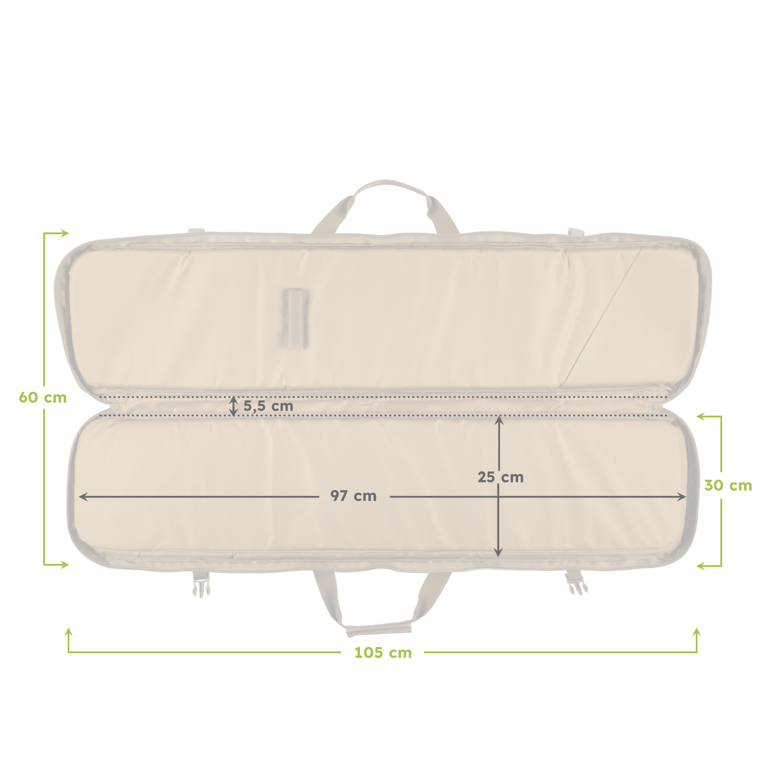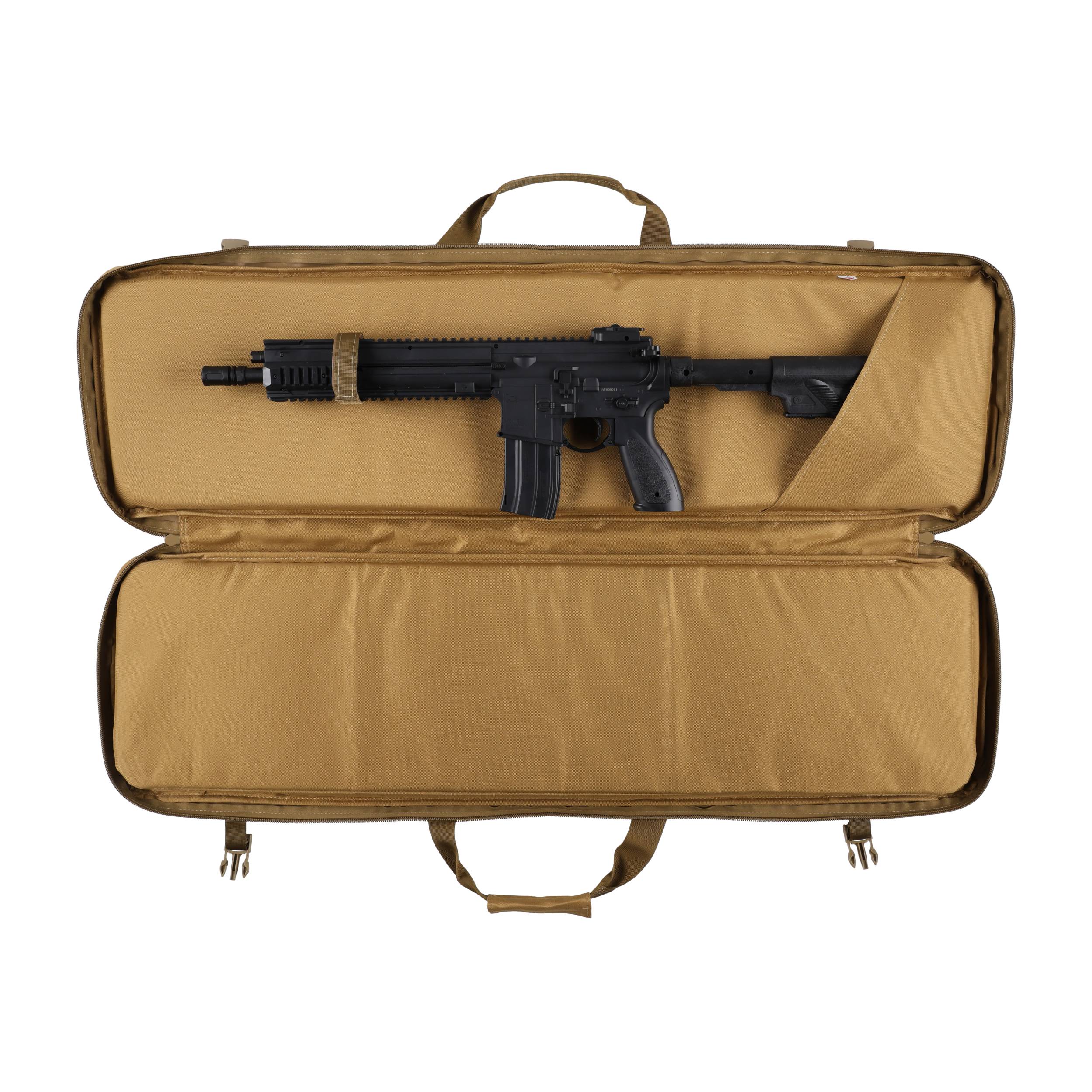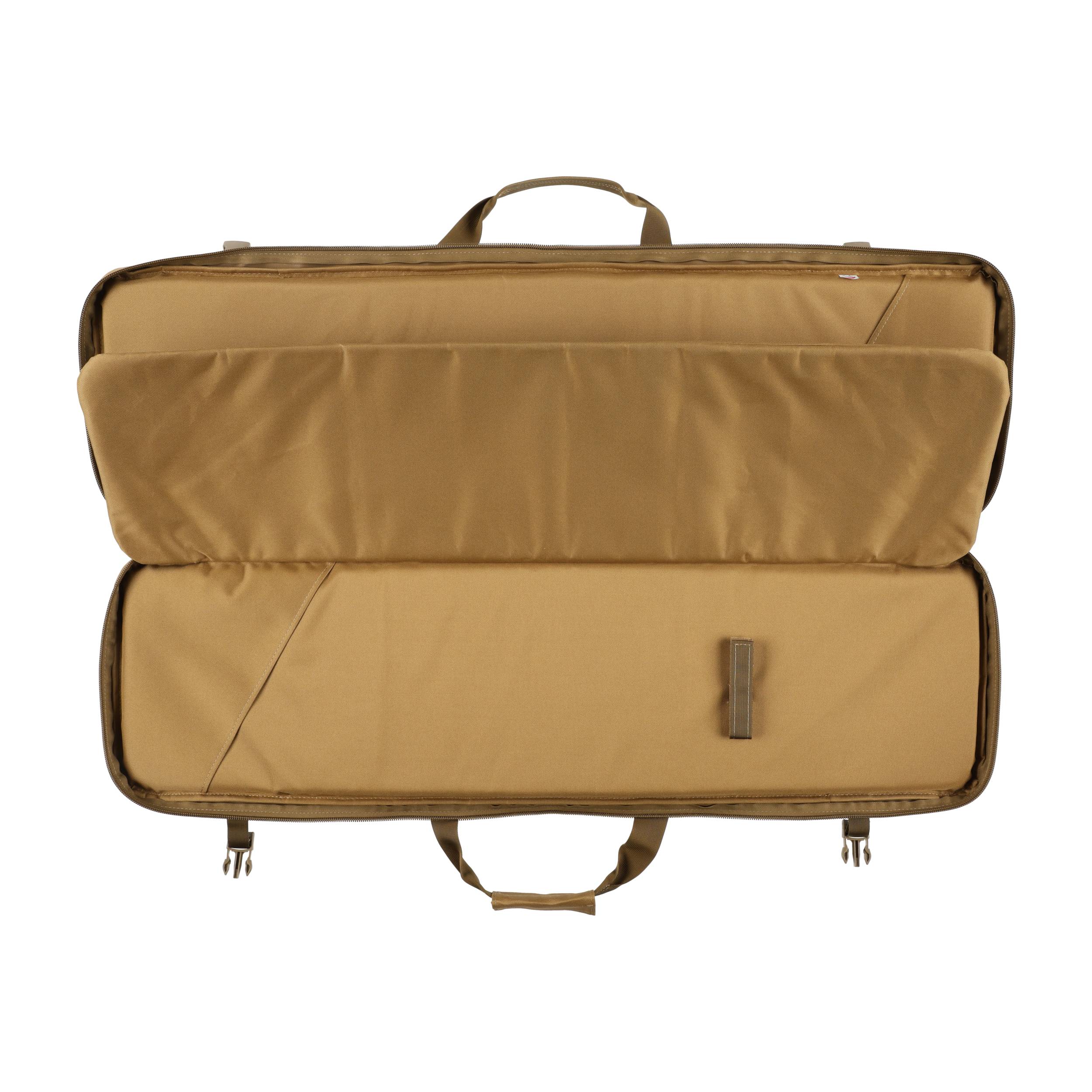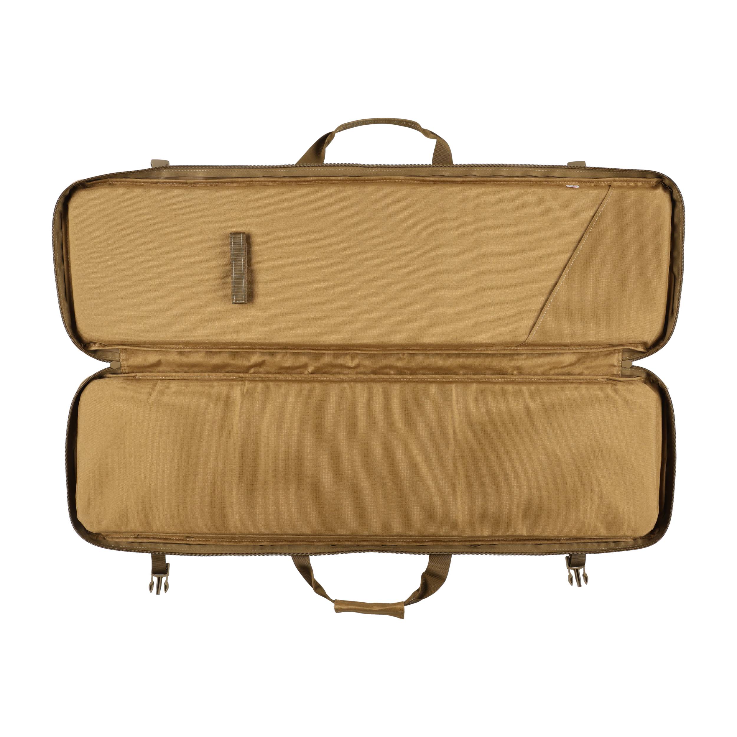 Pokrowiec ma 2 komory o wymiarach ok. 105 × 30 cm, która idealnie pomieszczą się karabinek AR-15/AK, strzelbę oraz sztucer z optyką. Do stabilizacji broni zastosowano nylonową taśmę zapinaną na fastex. We wnętrzu pokrowca znajduje się płaska kieszeń (np. na tłumik). Do transportu służą podwójny chwyt oraz szerokie szelki pozwalające wygodnie przenosić pokrowiec na plecach. Pokrowiec zamykany jest za pomocą dwukierunkowego zamka błyskawicznego marki Kroko, który został wszyty niemal na całej długości, umożliwiając wygodne rozłożenie futerału na płasko. Na przedniej ściance pokrowca znajdują się 4 obszerne kieszenie zamykane na zamki (jedna z panelem velcro), w których możemy przenosić magazynki, amunicję oraz inne akcesoria niezbędne na strzelnicy. Wysoką jakość potwierdzają plastikowe dodatki marki ITW Nexus.