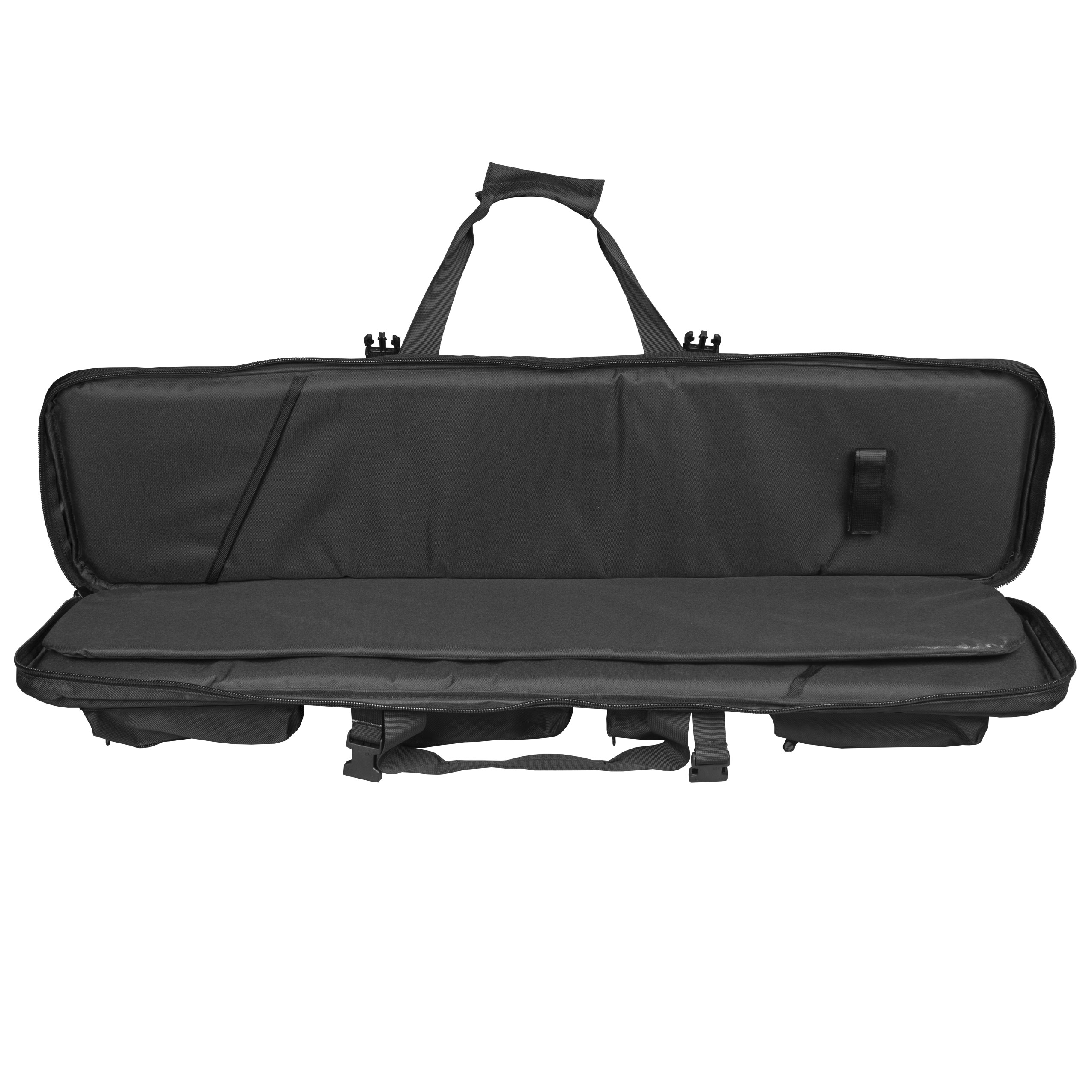 Pokrowiec ma 2 komory o wymiarach ok. 105 × 30 cm, która idealnie pomieszczą się karabinek AR-15/Ak, strzelbę oraz sztucer z optyką. Do stabilizacji broni zastosowano nylonową taśmę zapinaną na fastex. We wnętrzu pokrowca znajduje się płaska kieszeń (np. na tłumik). Do transportu służą podwójny chwyt oraz szerokie szelki pozwalające wygodnie przenosić pokrowiec na plecach. Pokrowiec zamykany jest za pomocą dwukierunkowego zamka błyskawicznego marki Kroko, który został wszyty niemal na całej długości, umożliwiając wygodne rozłożenie futerału na płasko. Na przedniej ściance pokrowca znajdują się 4 obszerne kieszenie zamykane na zamki (jedna z panelem velcro), w których możemy przenosić magazynki, amunicję oraz inne akcesoria niezbędne na strzelnicy. Wysoką jakość potwierdzają plastikowe dodatki marki ITW Nexus.