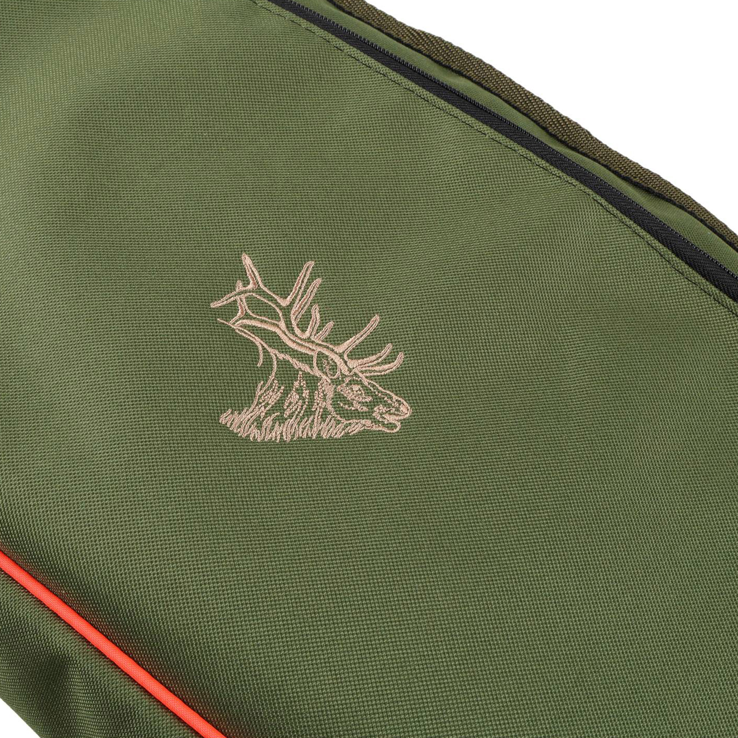 Pokrowiec na broń myśliwską Forsport LPDK 18 to niezawodne akcesorium służące do transportowania broni, zaprojektowane dla myśliwych oraz strzelców rekreacyjnych. Model ten łączy w sobie wysoką jakość wykonania, elegancki wygląd i praktyczne rozwiązania. Pokrowiec jest wykonany z wytrzymałego włókna poliestrowego/ polipropylenowego, dzięki czemu cechuje się wyjątkową trwałością uszkodzenia i przedarcia oraz elegancją. Za zamykanie służą masywne, podwójne zamki błyskawiczne. Na przedniej kieszeni wyszyto haft przedstawiający łeb byka. Kolorystyka pokrowca to połączenie koloru oliwkowego wzbogaconego pomarańczowawym akcentem bizy.