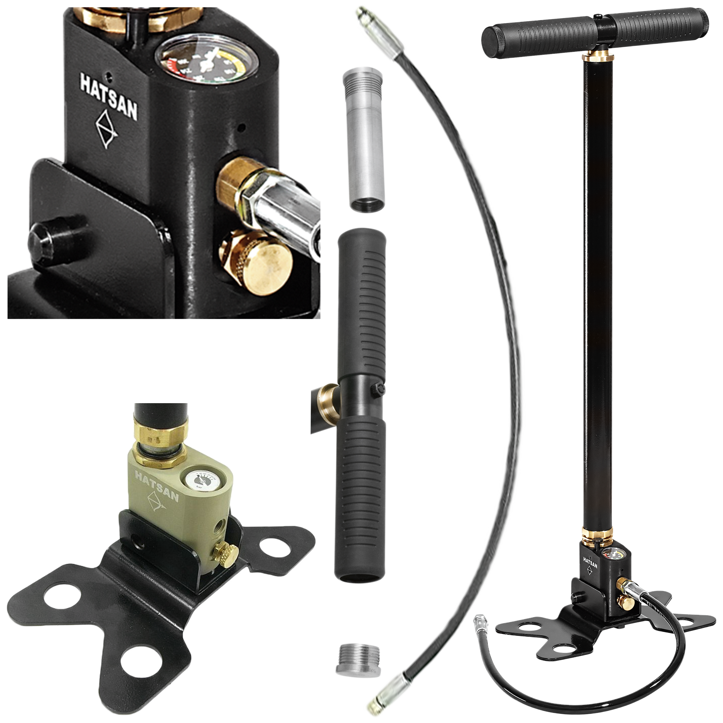 Pasuje do większości kartuszy na rynku, a w szczególności do wszystkich kartuszy Hatsan z serii ATP1, AT44, BT65. W pełni rozbieralna, posiada wbudowany manometr, odpowietrznik oraz filtr wilgoci powietrza i kurzu. Posiada wygodną podstawkę, która zapewnia stabilność podczas ładowania. Ciśnienie robocze do 250 bar.