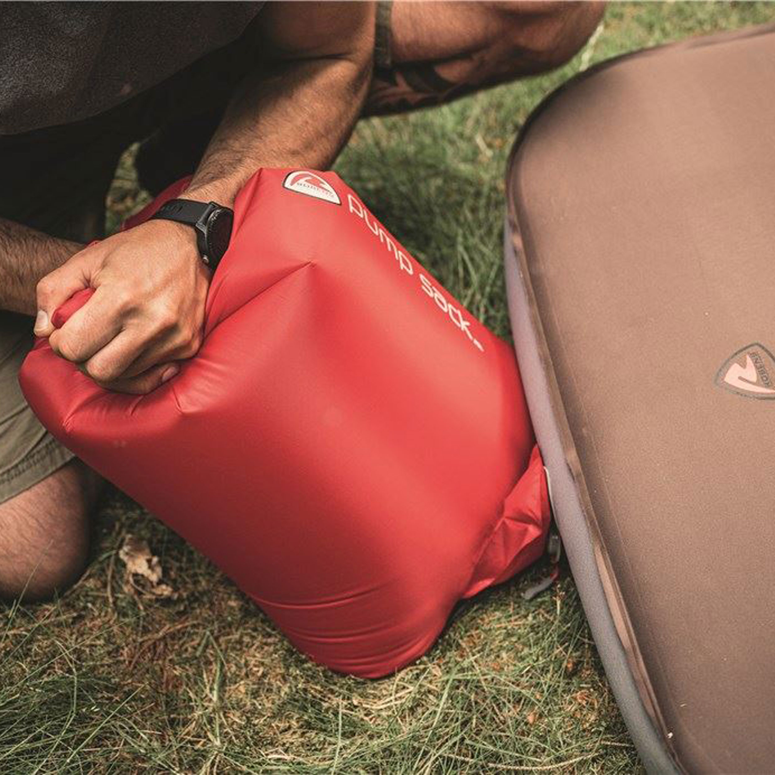 Robens Pump Sack jest kompatybilna z materacami marki Robens, wyposażonych w zawór Peak Valve, który zapewnia bardzo duży przepływ powietrza. To połączenie pozwala na jeszcze szybsze napompowanie materaca, co może okazać się niezwykle przydatne podczas nagłych załamań pogody.