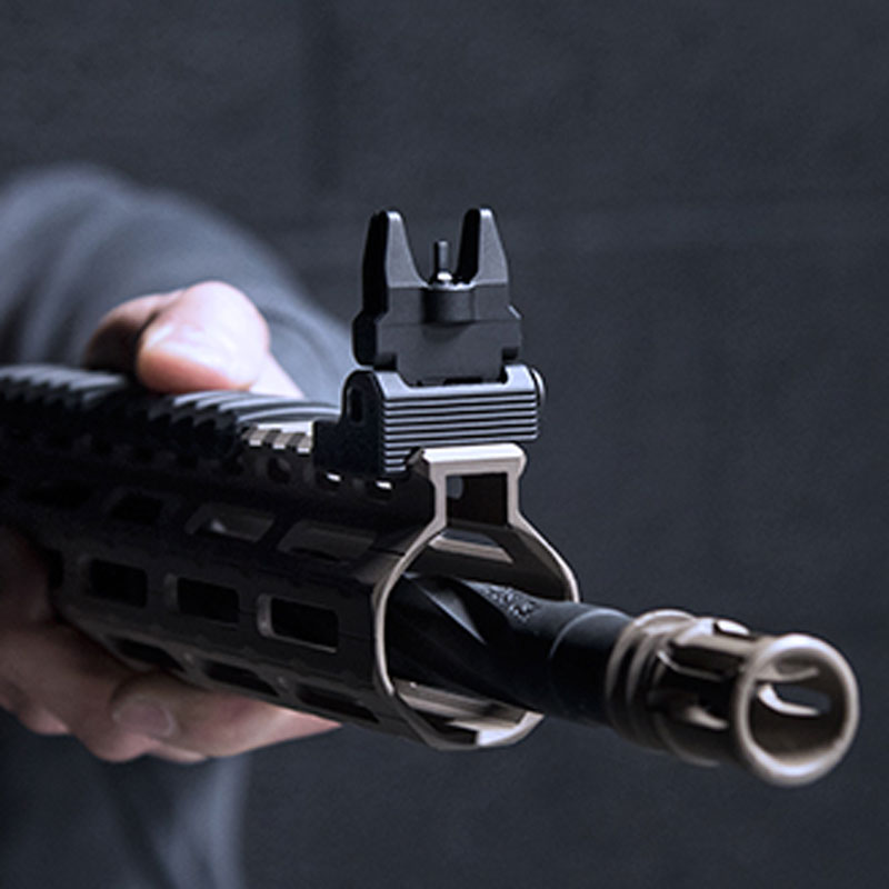 Muszka składana Leapers UTG Accu-Sync Spring-loaded AR15 przeznaczona do karabinków AR15, w pełni kompatybilna z fabryczną muszką oraz kolimatorami.