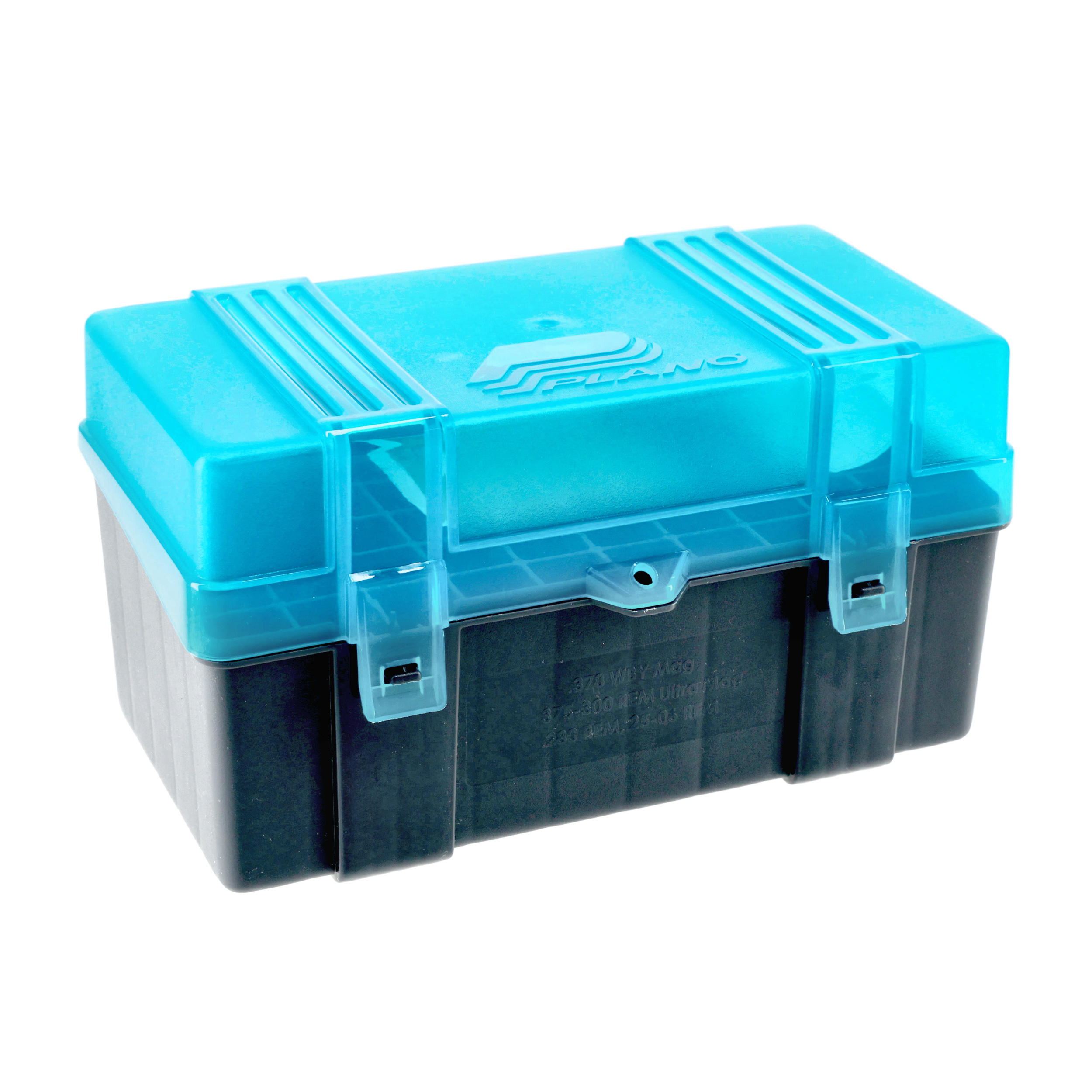 Pudełko na amunicję karabinową Plano 123050 o pojemności 50 sztuk naboi w kalibrze .30-06, 7 mm Magnum, .25-06 Remington, .270, .280 Remington, .338 Winchester Magnum, .340 Weatherby Magnum zostało wykonane z wytrzymałego polimeru.