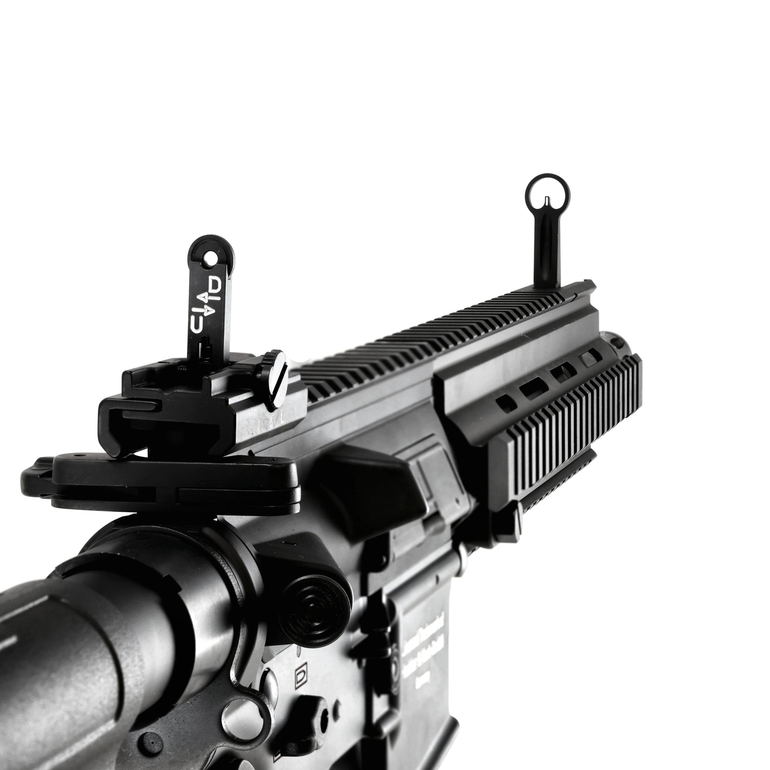 Podobnie jak w oryginale, w replice zastosowano przyrządy celownicze typu flip-up (składane), które po zamocowaniu kolimatora mogą pełnić funkcję przyrządów zapasowych.