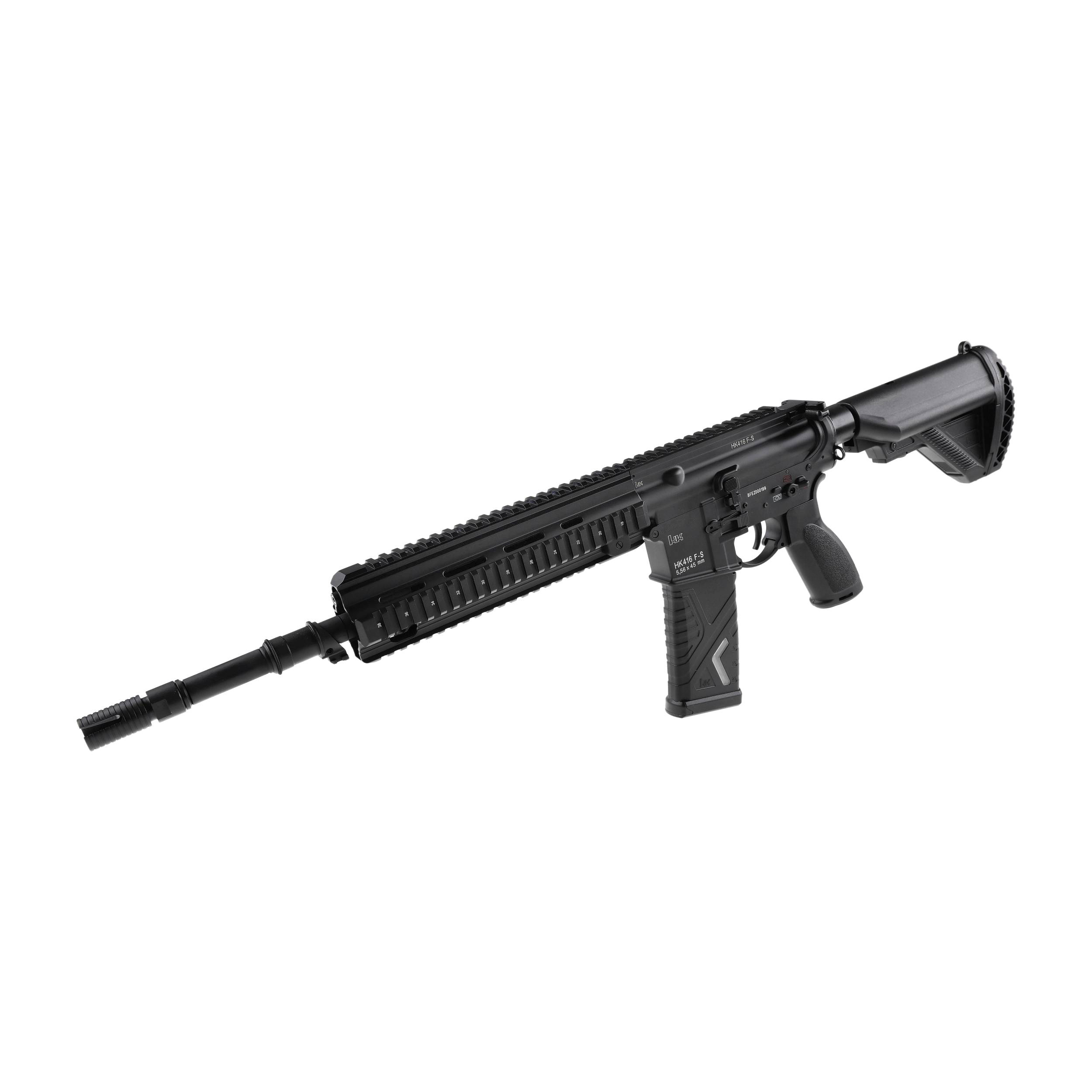 Replika jednego z najchętniej wykorzystywanych przez jednostki specjalne karabinka w wersji zapewniającej maksymalny realizm. ASG Heckler&Koch HK416 w wersji F-S bazuje na konstrukcji niezawodnej broni wywodzącej się od karabinka AR-15, dostosowanej pod wymagania kontraktu Francuskich Sił Zbrojnych. Replika gwarantuje użytkownikowi identyczną jak w oryginale ergonomię oraz manewrowość jak i umożliwia szerokie modyfikacje dzięki popularnej platformie, oraz szeregowi szyn akcesoryjnych w standardzie Picatinny.