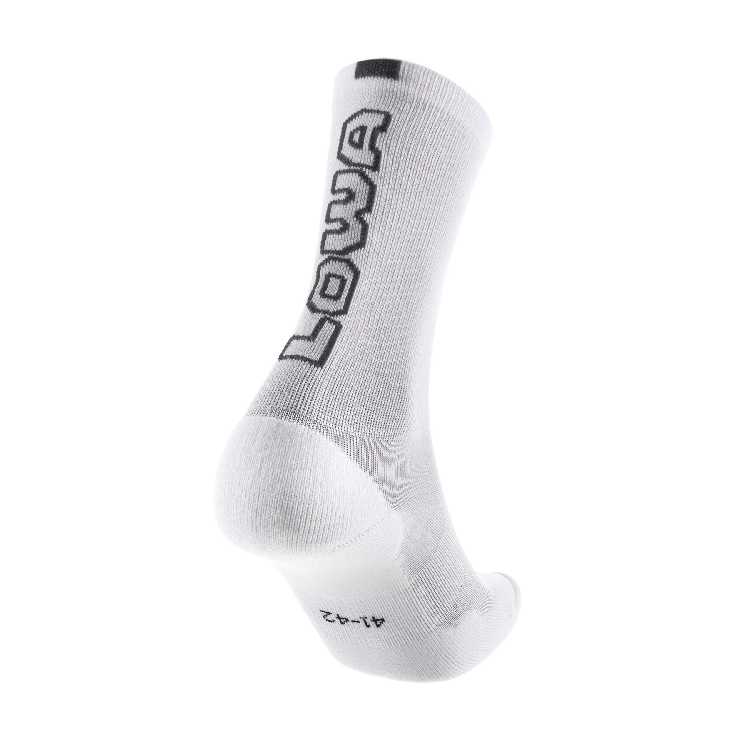 LOWA Logo to wygodne i komfortowe skarpety zaprojektowane do codziennego użytku. Wykonano je z połączenia różnorodnych materiałów (33% poliamid, 26% polipropylen, 24% bawełna, 15% poliester, 2% elastan), a na tkaninę naniesiono rzucające się w oczy logo marki LOWA. Skarpety wyposażono w żebrowany ściągacz, zapobiegający ich zsuwaniu się w trakcie przemieszczania się. Dodatkowo dobre dopasowanie do stopy oraz wysoka oddychalność zapewni maksymalny komfort w każdych warunkach.