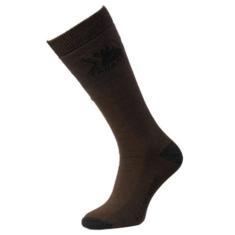 Skarpety męskie Tagart Winter HIGH zostały zaprojektowane specjalnie w celu ochrony stóp przed wyjątkowo ujemnymi temperaturami w najzimniejszych miesiącach w roku. Zastosowano tutaj połączenie klasycznych rozwiązań oraz nowoczesnej technologii. Skarpety wykonano w 50% z włókna Merino, uzupełnionymi włóknami DuPont Thermolite i lycry. Na piętach i palcach zastosowano wzmocnienia z Kevlaru, dzięki czemu odzież nie ulega łatwemu przedarciu. Dodatek Lycry zapewnił elastyczność i rozciągliwość. Winter high dobrze odprowadzają zbierający się pot ze stopy, dzięki czemu noga pozostaje zawsze sucha.