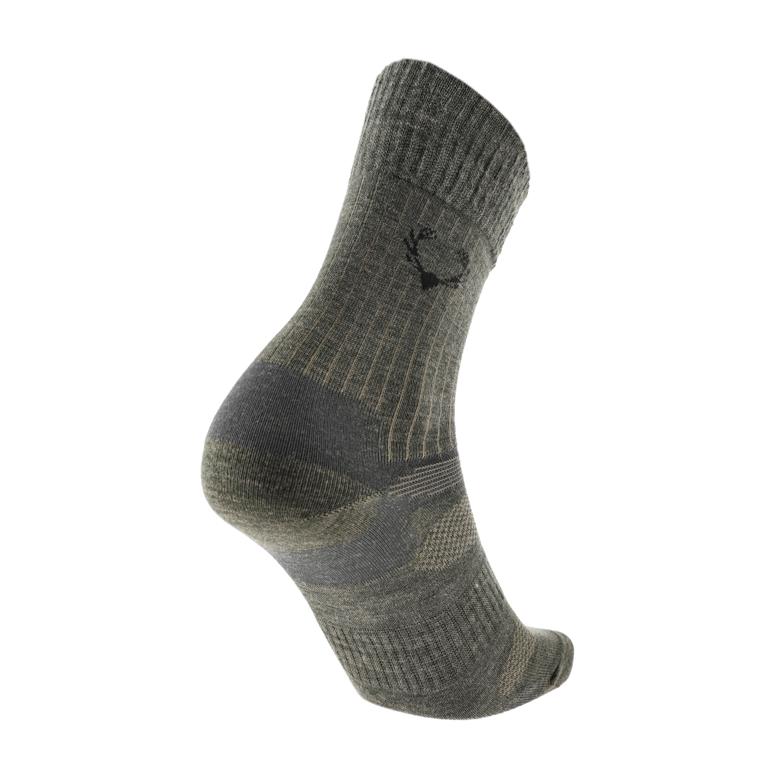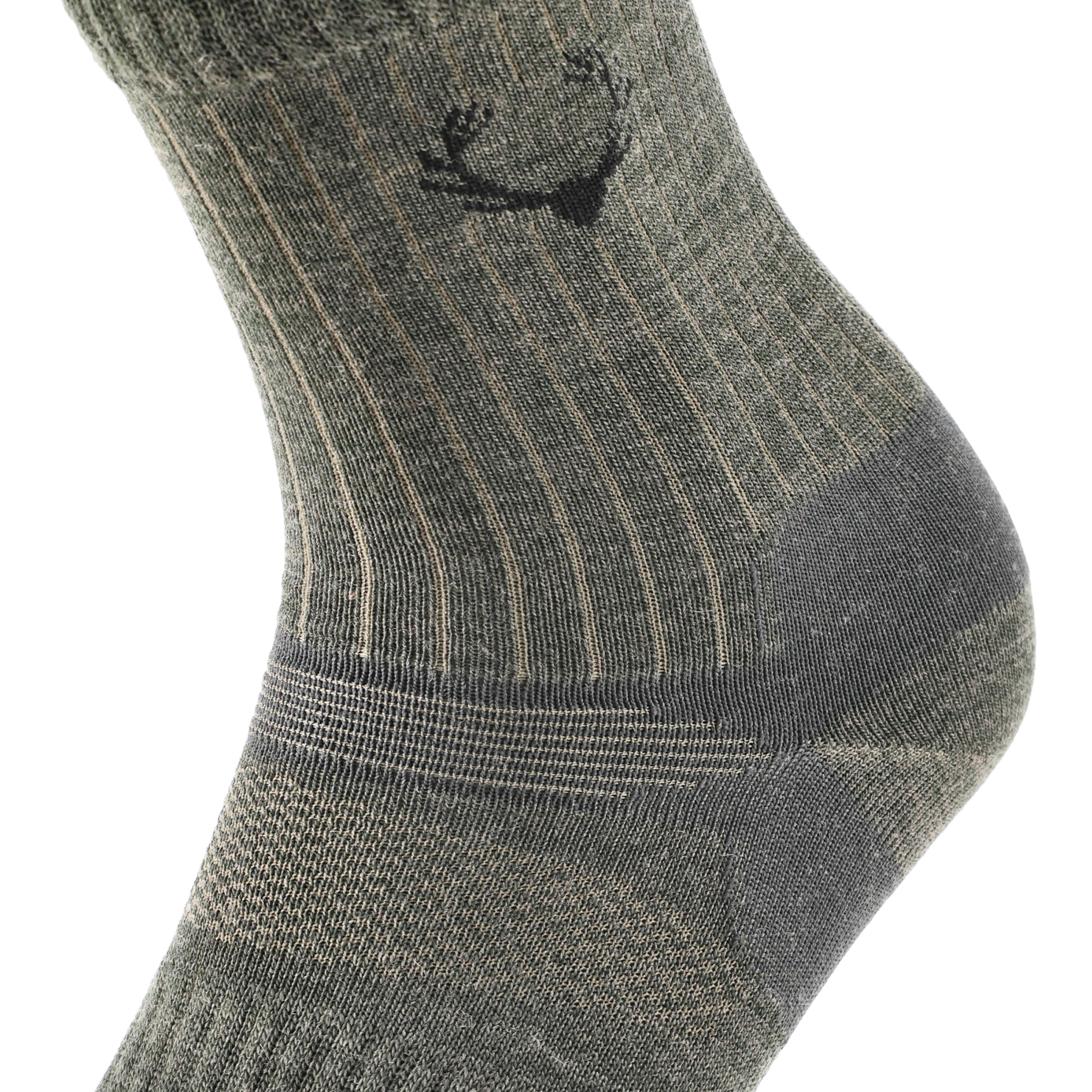 Skarpety posiadają elastyczne ściągacze w śródstopiu oraz górnej części skarpety, dzięki którym skarpety zawsze pozostaną na swoim miejscu i umożliwią zachowanie najwyższego komfortu podczas polowań oraz wzmożonej aktywności.