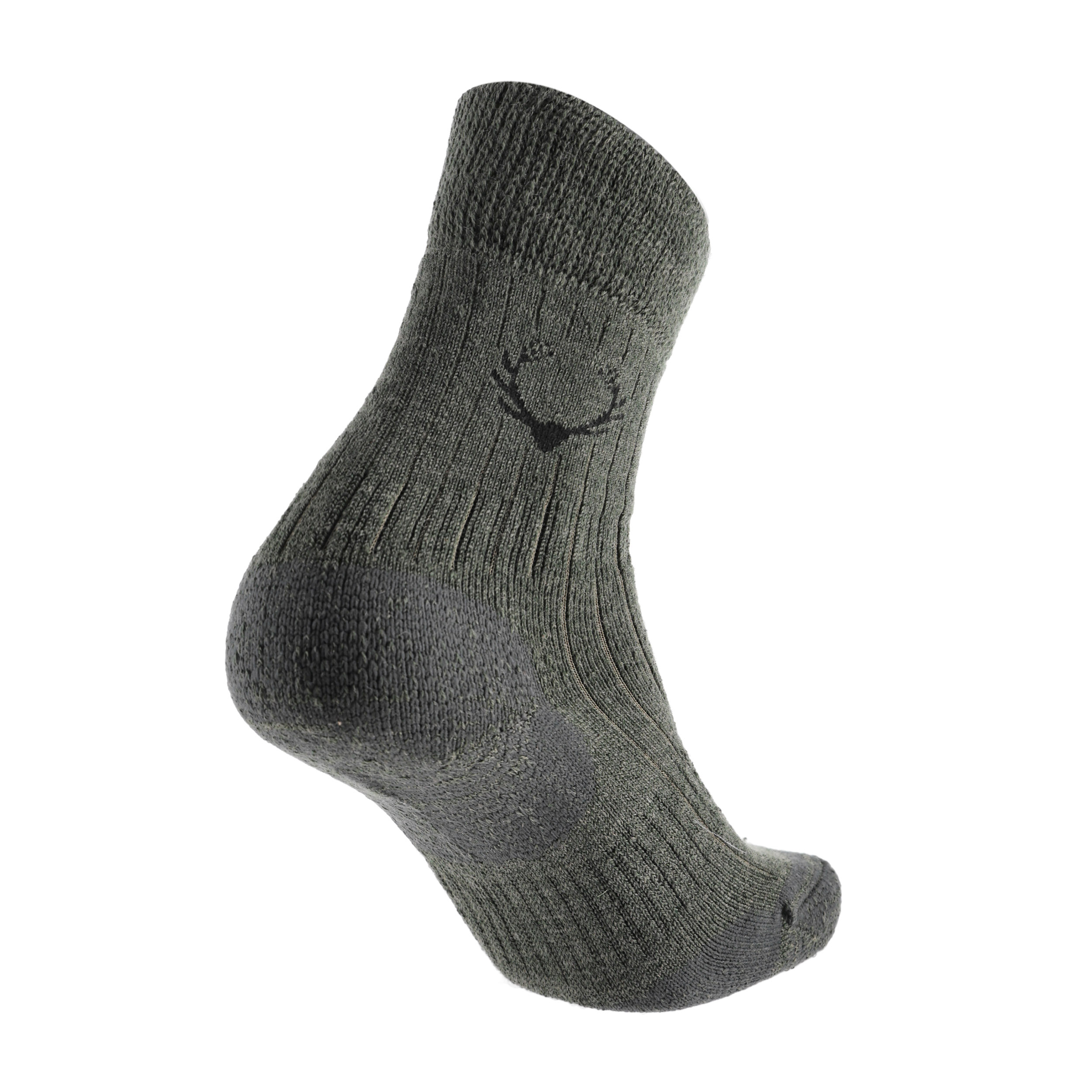 Skarpety myśliwskie Comodo krótkie to grube skarpety zimowe, wykonane z wełny merynosów i akrylu. Przeznaczone dla myśliwych, funkcjonariuszy służb mundurowych, miłośników survivalu i wędrówek w trudnych warunkach pogodowych.