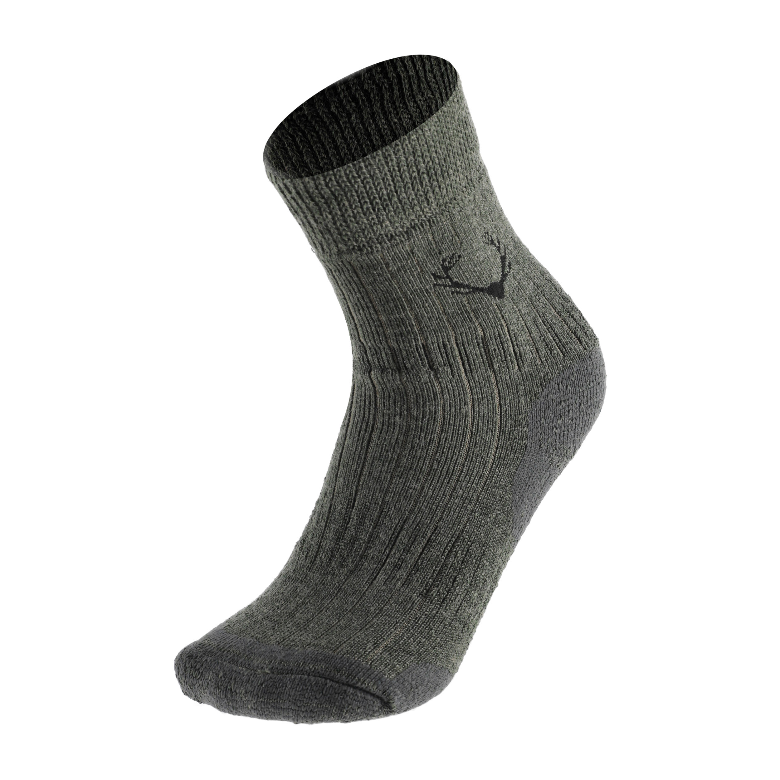 Skarpety myśliwskie Comodo krótkie to grube skarpety zimowe, wykonane z wełny merynosów i akrylu. Przeznaczone dla myśliwych, funkcjonariuszy służb mundurowych, miłośników survivalu i wędrówek w trudnych warunkach pogodowych.