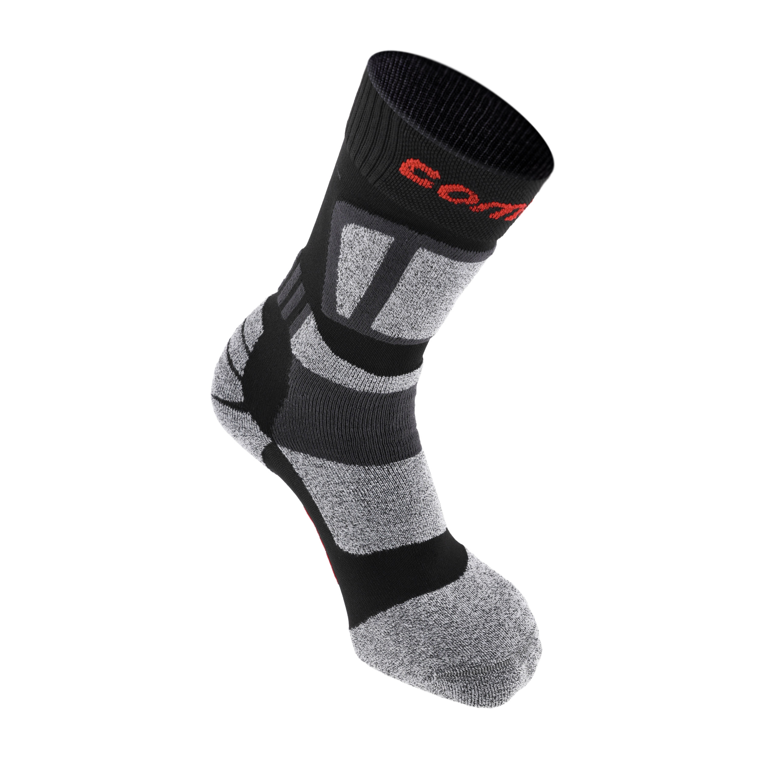 Konstrukcja skarpety pozwala na doskonałe dopasowanie do stopy i łydki, przez co skarpeta nie zwija się i nie przemieszcza podczas chodzenia. Skarpety Comodo wyróżniają się również zastosowaniem stref, mających na celu zmaksymalizować komfort noszenia: