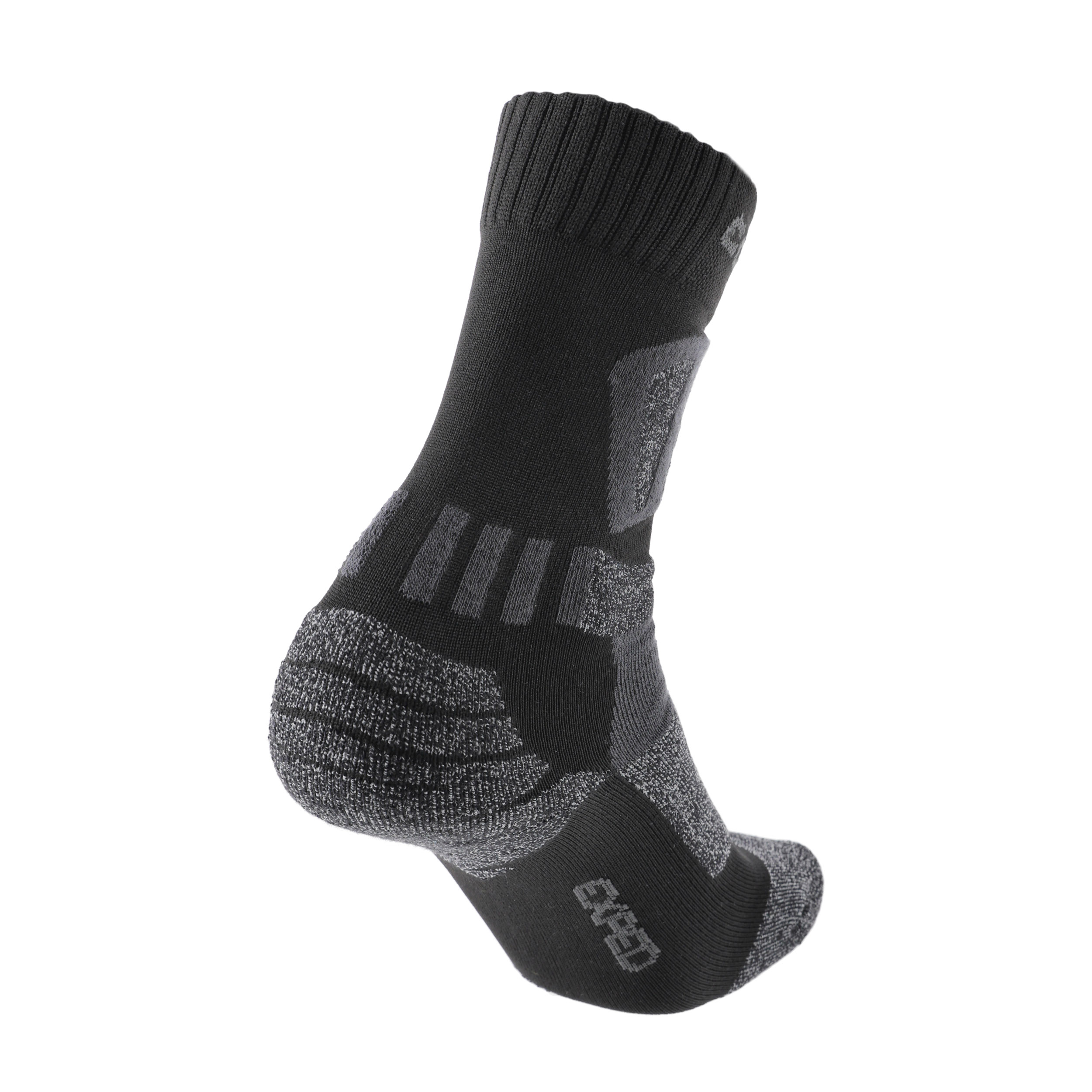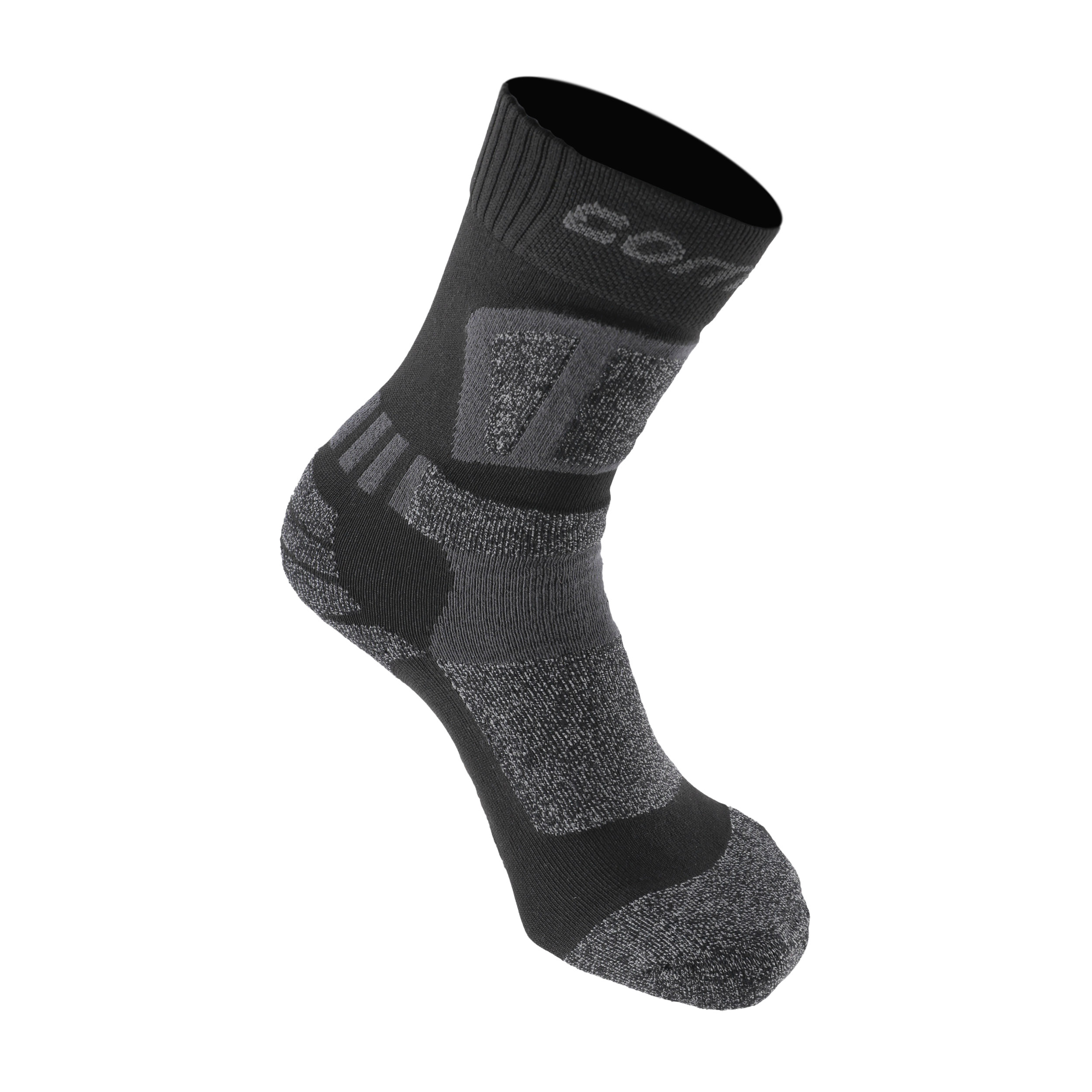 Skarpety wykonane są z poliestru DryTex Comfort, charakteryzującego się trwałością i wytrzymałością na uszkodzenia mechaniczne. Tkanina posiada również właściwości hydrofobowe, przez co bardzo dobrze odprowadza wilgoć od skóry. W mieszance materiału znajduje się także mikrowłókno polipropylenowe Siltex AG+, wzbogacone jonami srebra. Dzięki temu niwelowane są bakterie i drobnoustroje odpowiedzialne za powstawanie nieprzyjemnego zapachu.