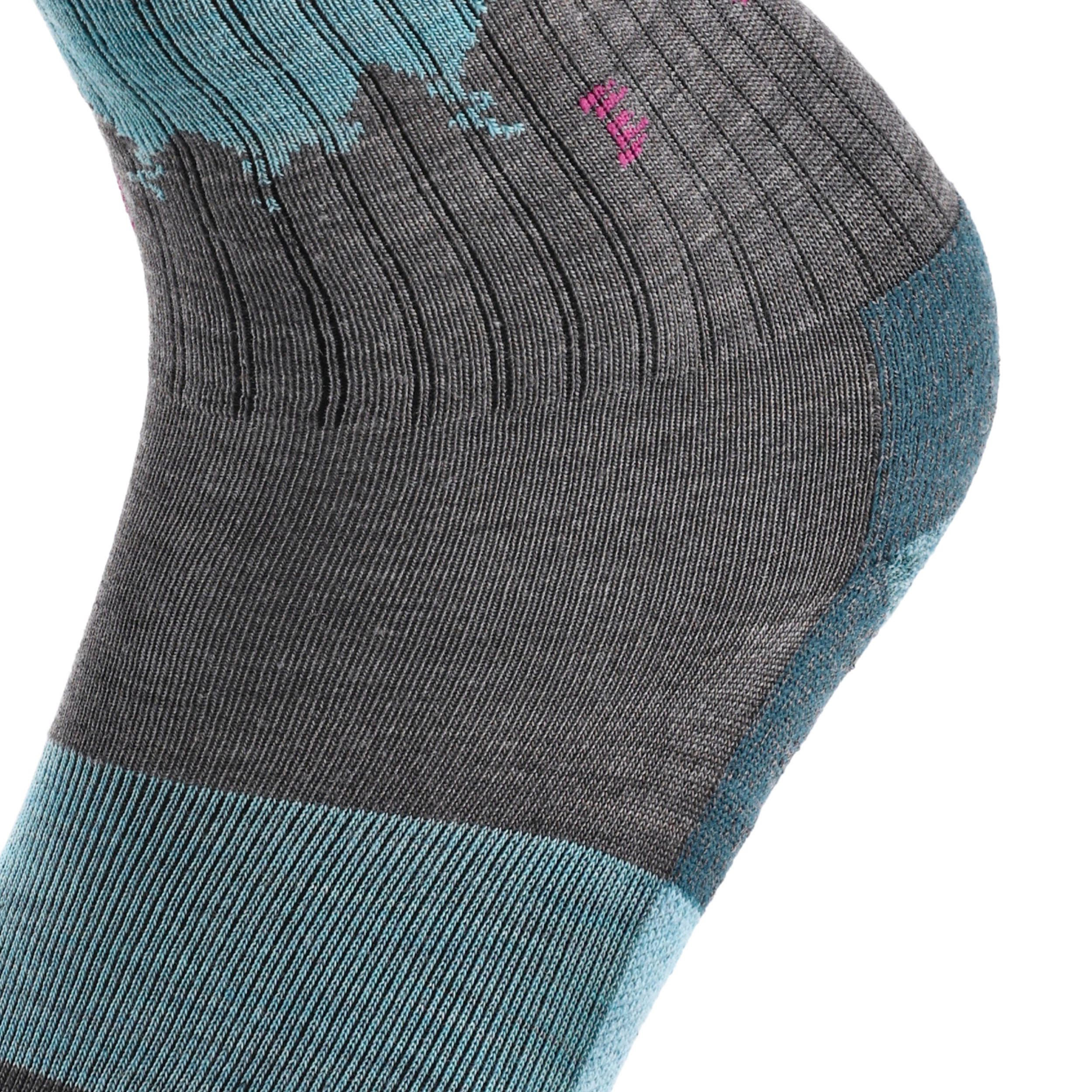Skarpety wykonane w technologii True Seamless™ Toe oferują gładkie, niemal niewyczuwalne szwy, co znacząco zmniejsza ryzyko powstawania otarć i zapewnia komfort podczas długotrwałego noszenia. Co więcej, wzmocnienia w okolicach podeszwy oraz amortyzacja w strefie ścięgna Achillesa podnoszą wygodę i trwałość skarpet, jednocześnie chroniąc stopy przed uczuciem zmęczenia nawet podczas intensywnych wędrówek.