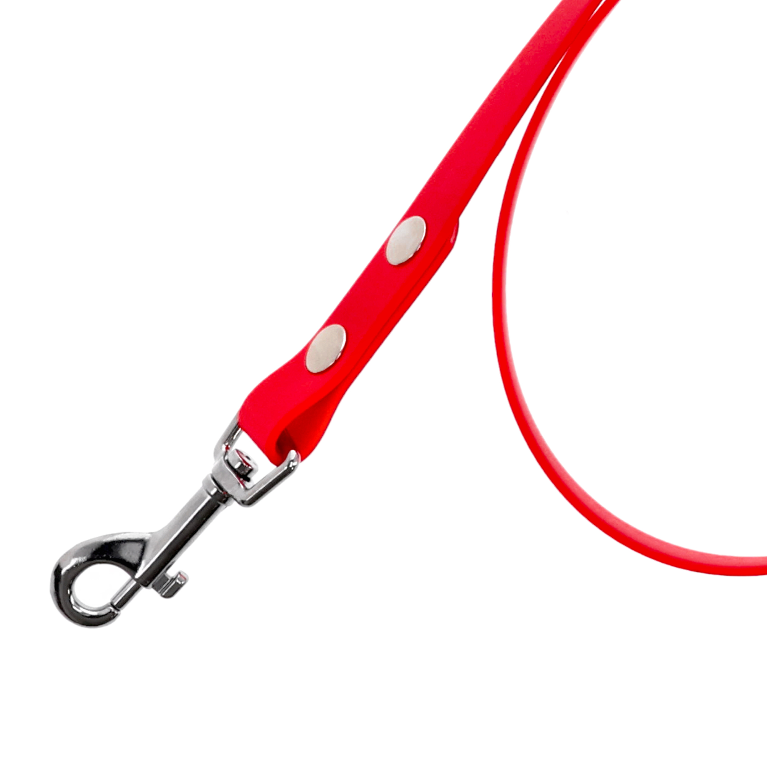Klasyczna smycz miejska dla psa, powstała z taśmy BioThane, która charakteryzuje się wytrzymałością i odpornością na warunki atmosferyczne i działanie wody. Dodatkowo jest bardzo łatwa w utrzymaniu czystości — wystarczy po spacerze przetrzeć wilgotną szmatką.