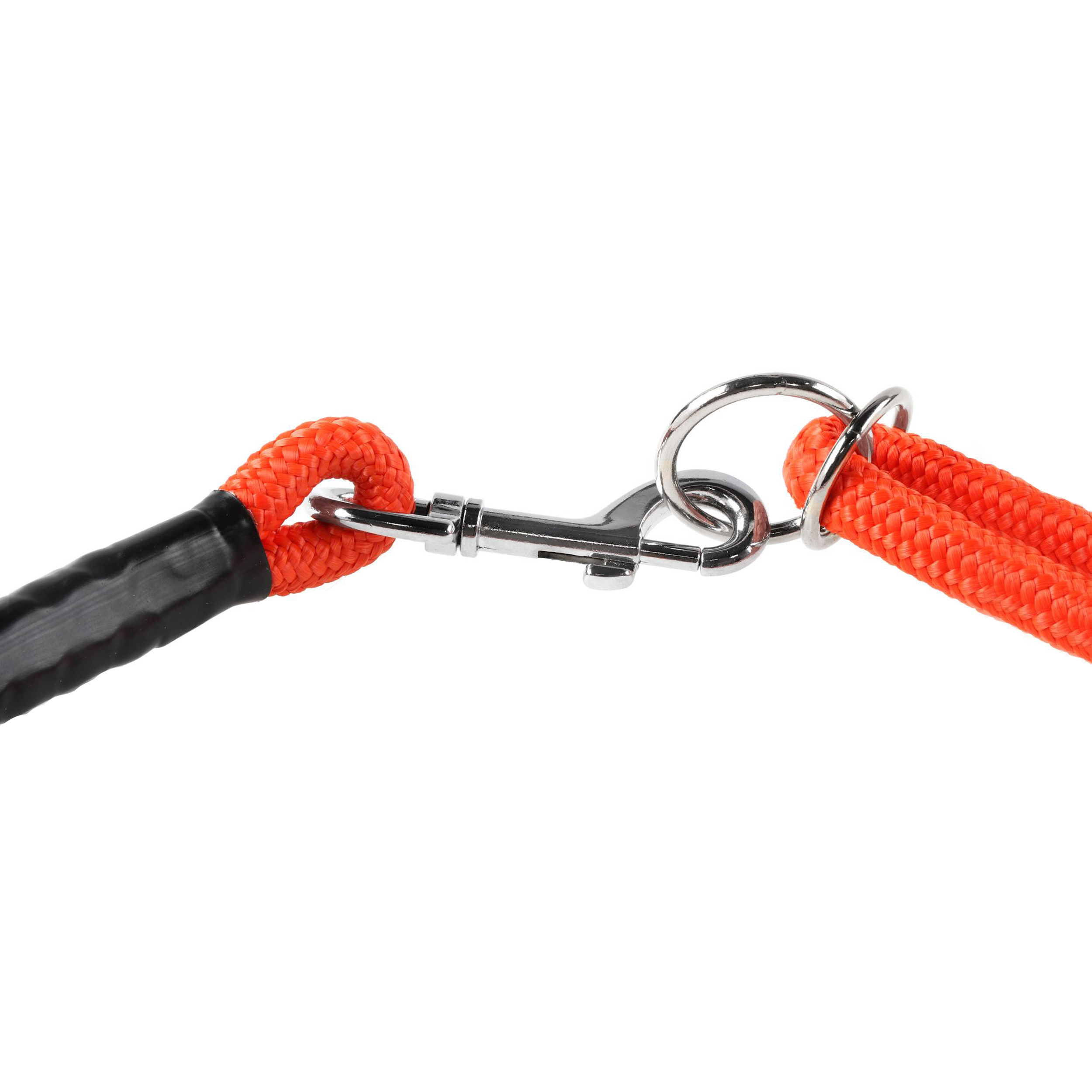 Smycz dla psa o długości 260 cm w kolorze pomarańczowym pozwala na łatwe i szybkie wydłużenie lub skrócenie długości w 2 zakresach, dzięki czemu możemy w pełni kontrolować czworonoga podczas zabawy, treningu i spaceru w mieście.