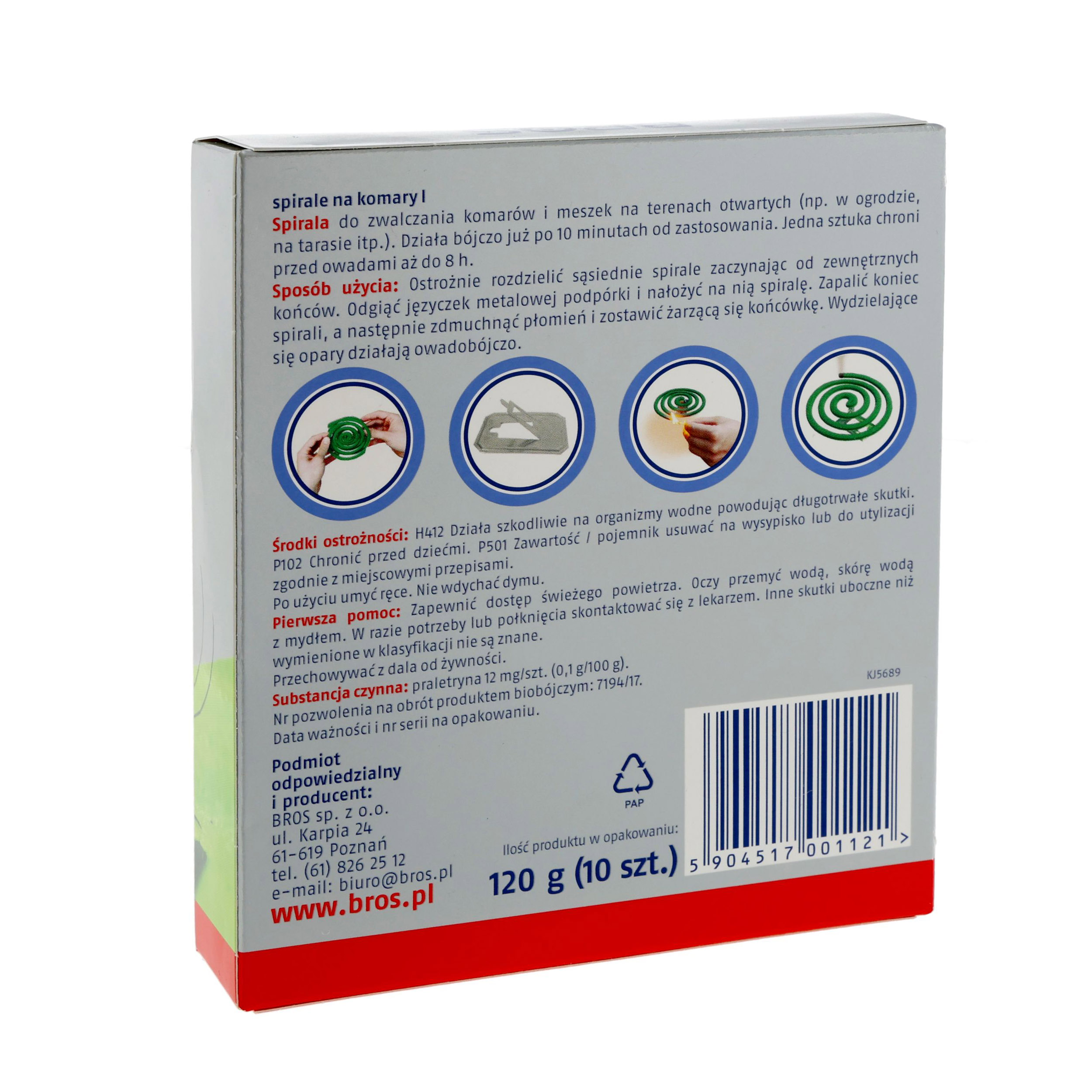 Spirala Bros na komary 10 szt. to odstraszacze zapachowe, które długotrwale chronią przed komarami, muszkami i innymi dokuczliwymi owadami. Dzięki zastosowaniu substancji czynnej d-aletryny spirale mają działanie odstraszające i owadobójcze.