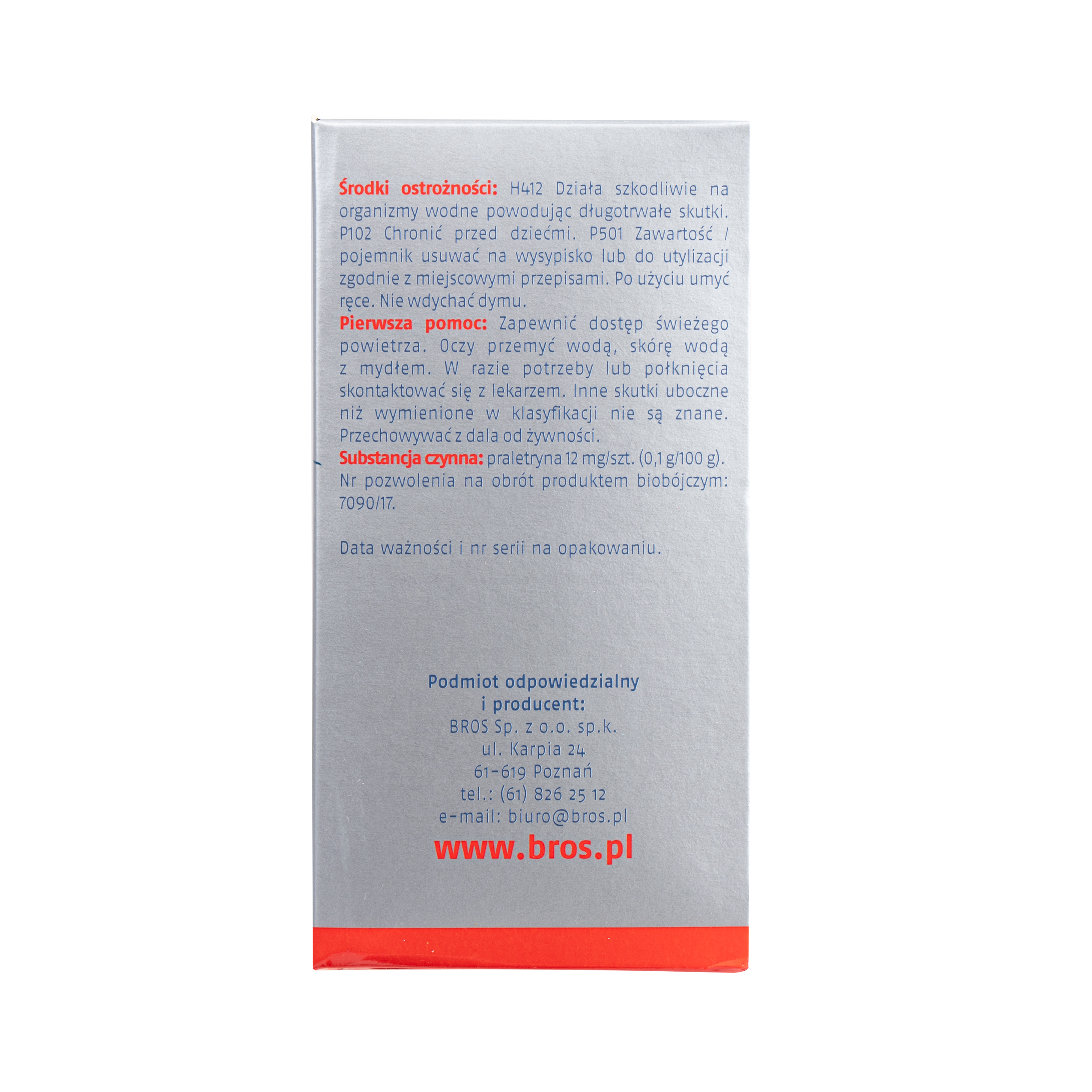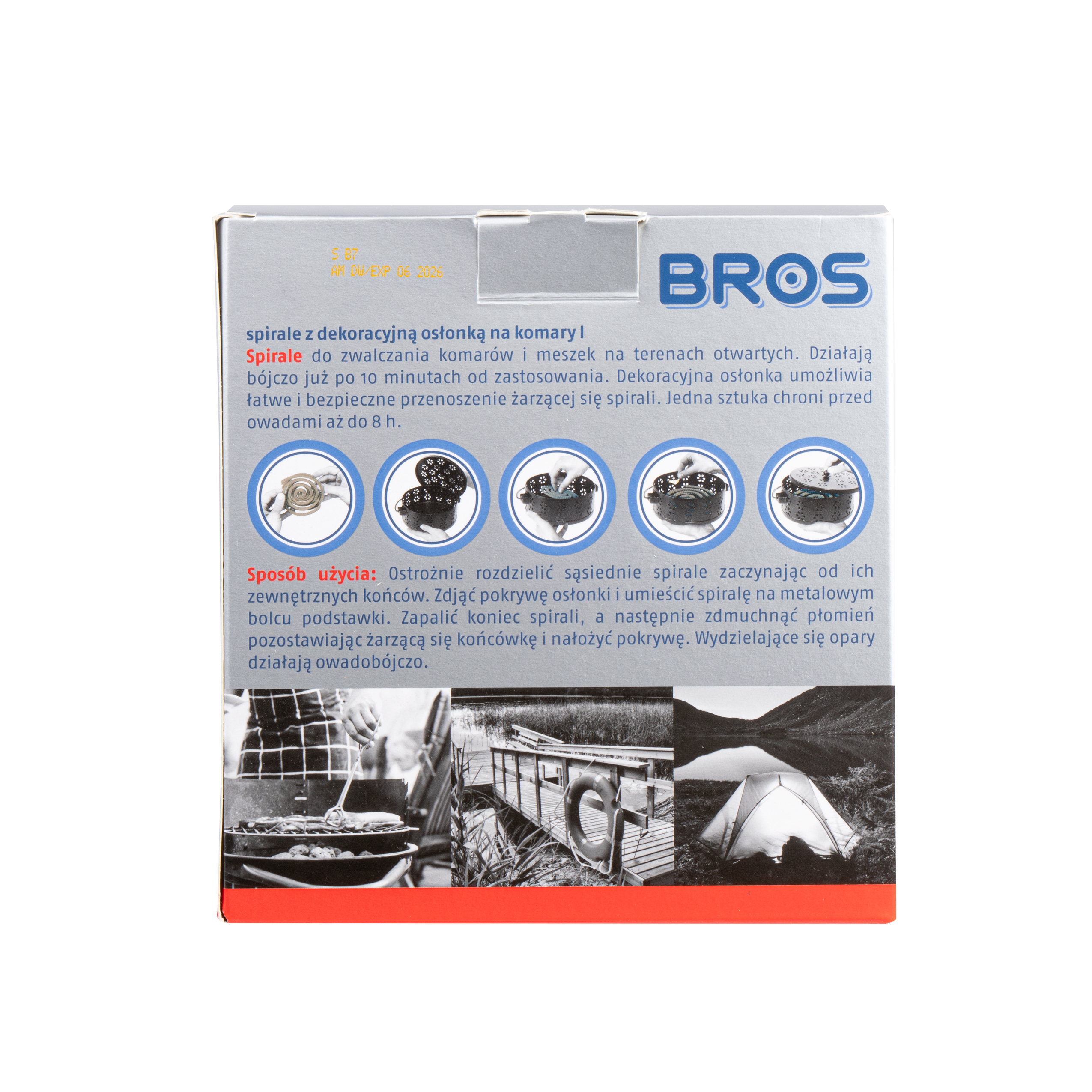 Spirala Bros na komary z dekoracyjną osłoną to odstraszacza zapachowy, który długotrwale chroni przed komarami, muszkami i innymi dokuczliwymi owadami. Dzięki zastosowaniu substancji czynnej d-aletryny spirala ma działanie odstraszające i owadobójcze.
