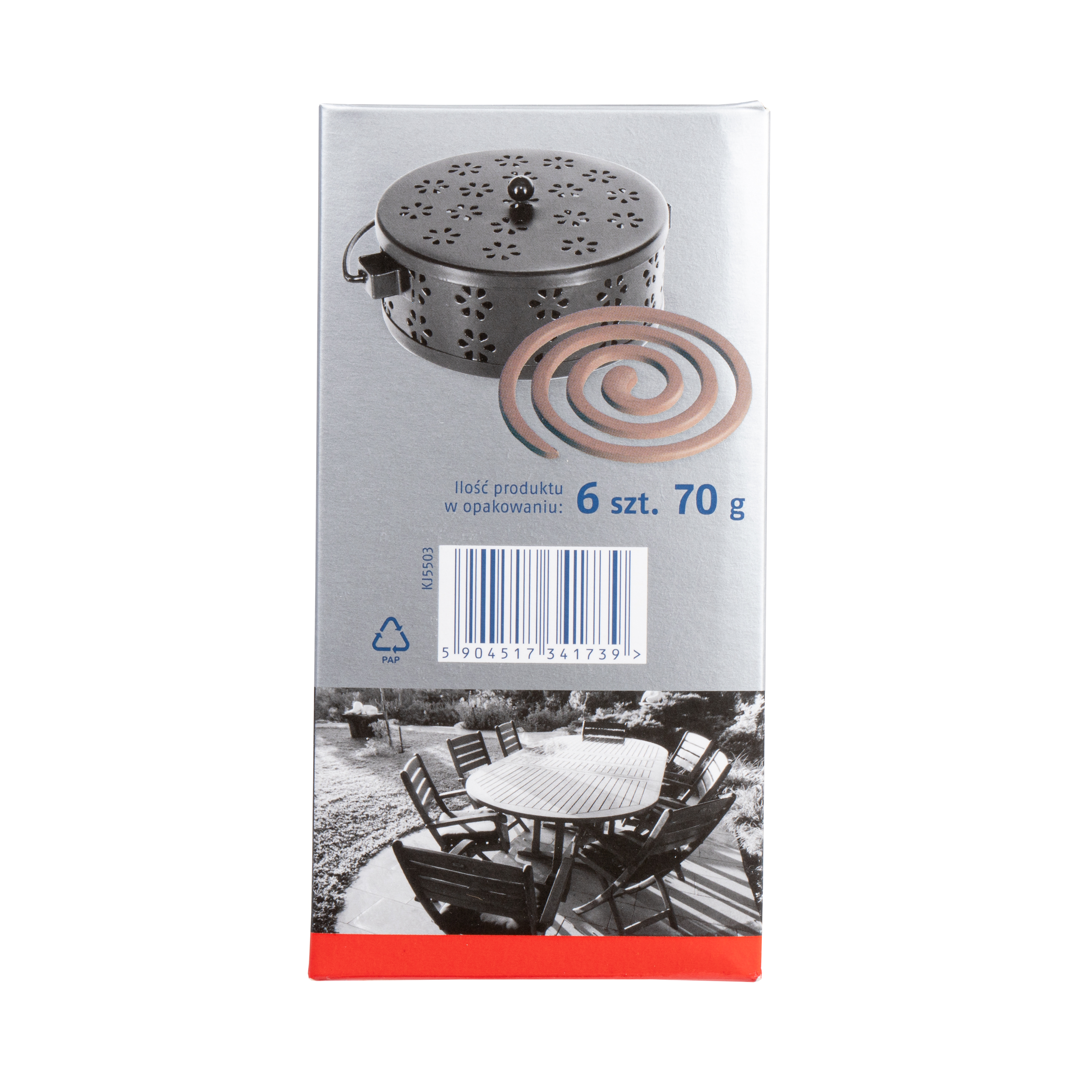 Spirale należy stosować wyłącznie na zewnątrz np. na tarasach, w ogrodach, lub na balkonie. W zestawie 6 spirali i ozdobna podstawka.