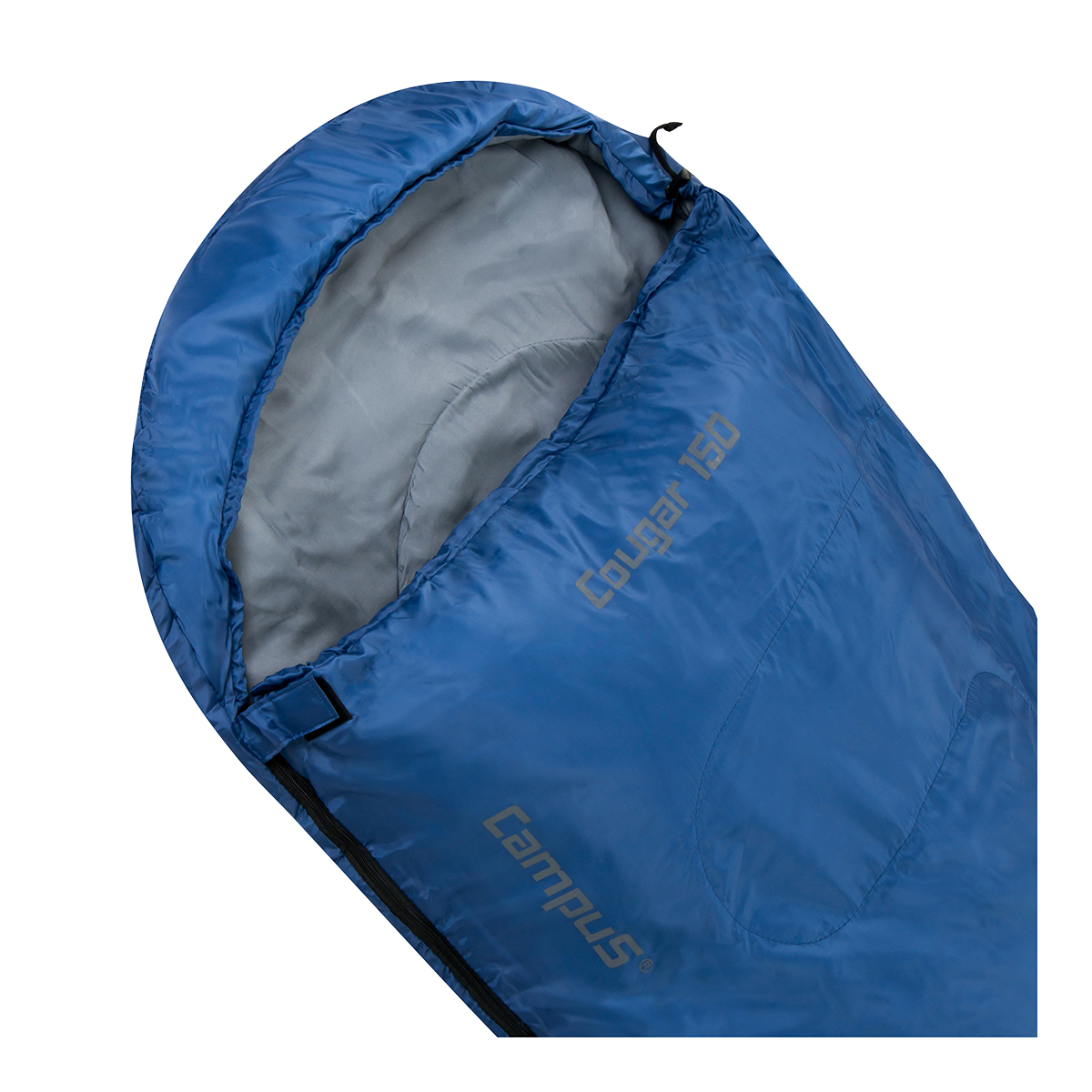 Campus Cougar 150 wyróżnia się dobrymi właściwościami termicznymi, wysoką jakością wykonania, zastosowaniem nowoczesnych technologii i materiałów m.in.: opatentowanego wypełnienia Hollowfiber oraz lekkich i wytrzymałych tkanin poliestrowych. Śpiwór ma dwukierunkowy zamek, umożliwiający rozpinanie także od dołu oraz system regulacji temperatury wewnątrz śpiwora. Dużym udogodnieniem jest system ANTI-BITE, który zapobiega wcinaniu się tkaniny w zamek. Komfort użytkowania zapewnia zamek rozpinany na całej długości dwóch boków. Po rozpięciu zamka śpiwór można łatwo przeistoczyć w standardową kołdrę. Do wygodnego przenoszenia Cougar 150 służy pokrowiec, z pasami kompresyjnymi, które ułatwiają zmniejszenie objętości śpiwora.