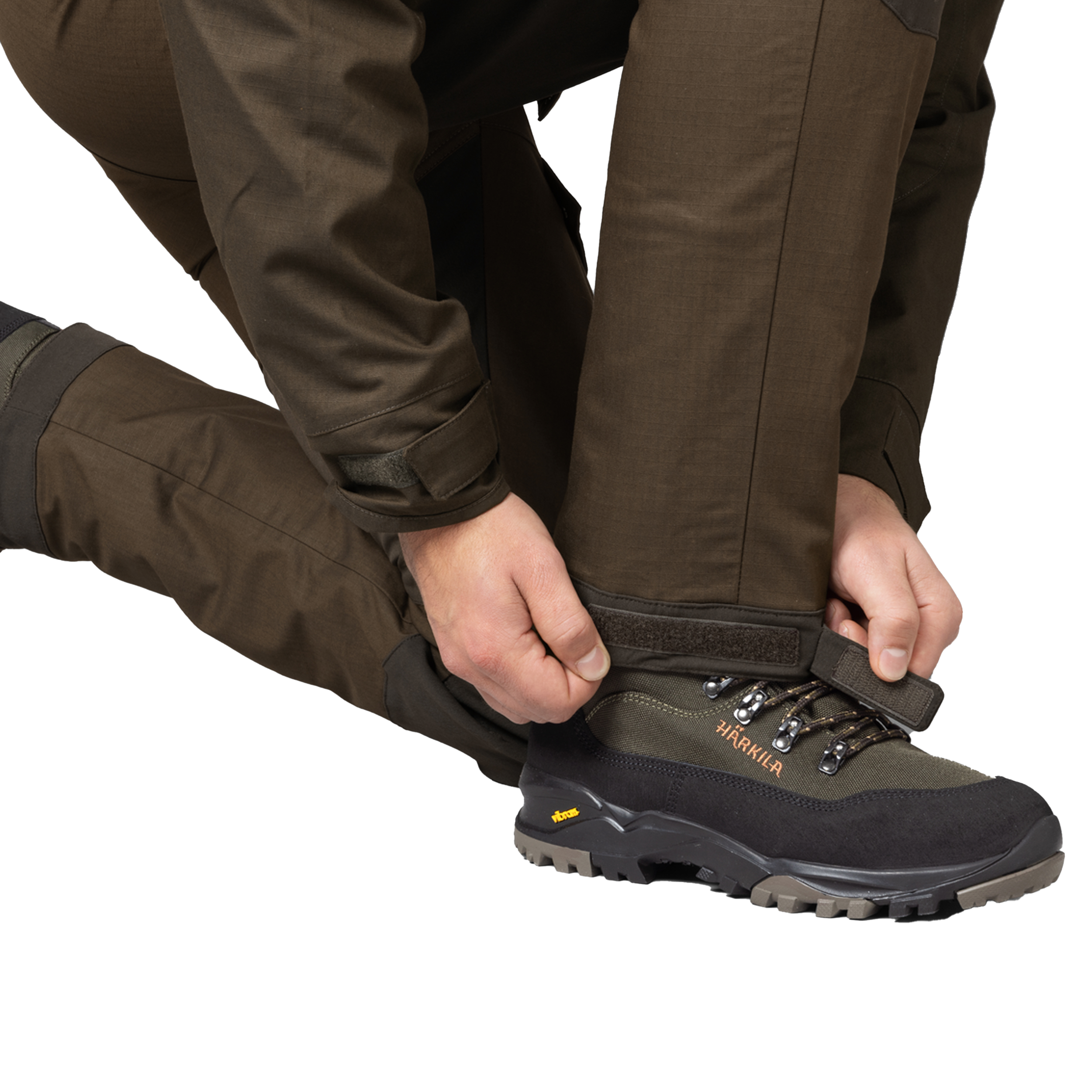 • Regulowany dół nogawek pozwala na dostosowanie spodni do warunków terenowych i indywidualnych preferencji.