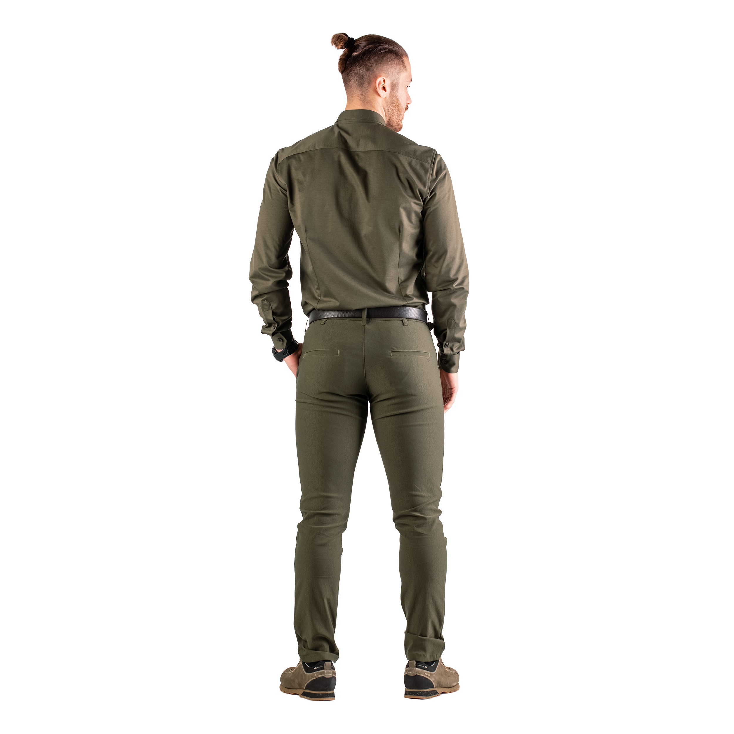 Męskie spodnie Falcon mają regularny krój i nawiązują do klasycznych spodni jeansowych. Ten model ma cztery funkcjonalne kieszenie — dwie z przodu i dwie z tyłu tak jak spodnie chino, w których możemy schować np. portfel, telefon, kluczyki do samochodu czy małą latarkę EDC.