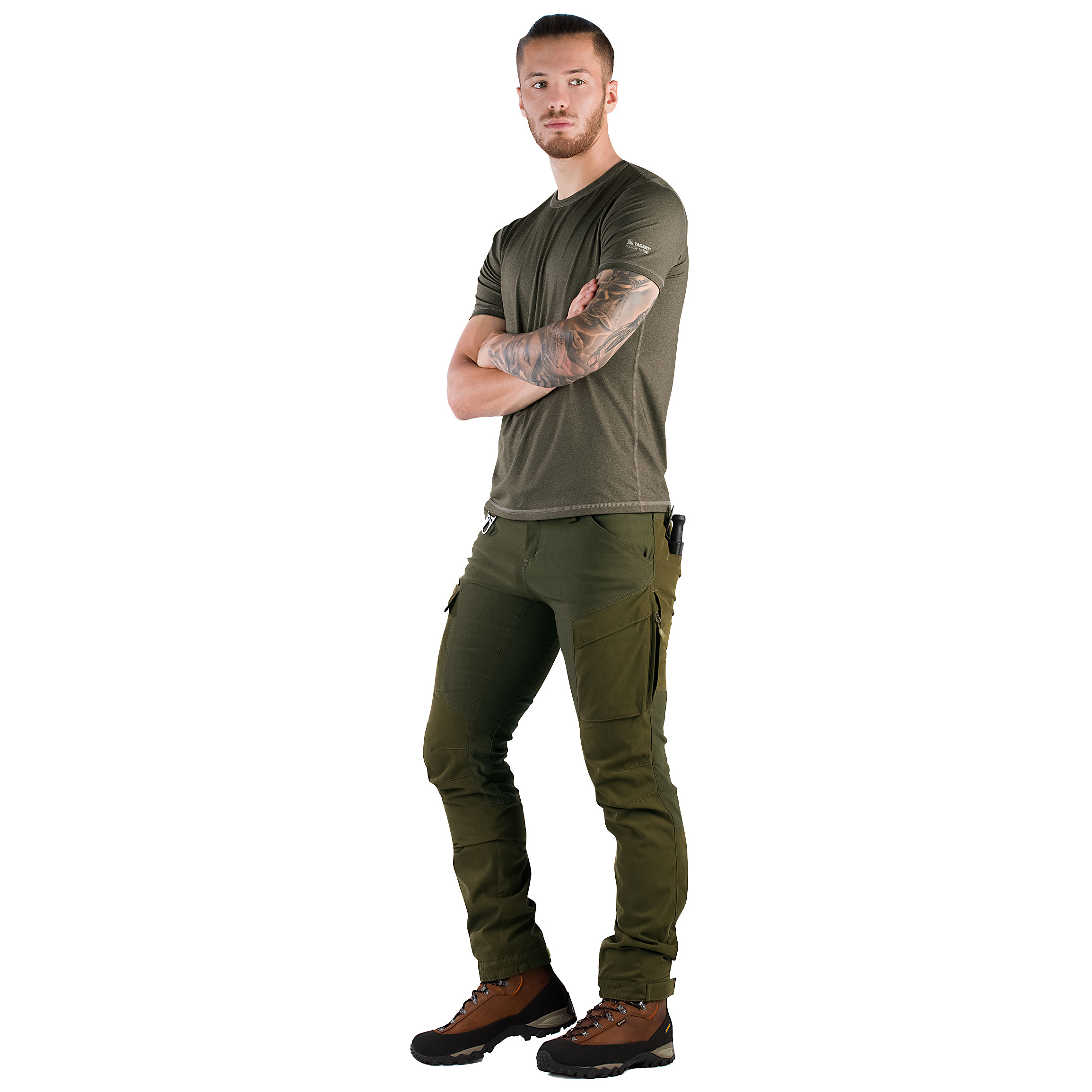 Guma wszyta w tylnej części spodni umożliwia dogodne dopasowanie, a klin wszyty pomiędzy udami sprawia, że spodnie prawidłowo przylegają do ciała, ale nie ograniczają swobody ruchów. Dzięki licznym funkcjonalnym kieszeniom bezpiecznie przetransportujesz wszystkie potrzebne przedmioty. Spodnie wyposażono w dwie specjalne kieszenie na latarką i nóż, dwie kieszenie górne, pięć kieszeni zapinanych (w tym dwie z funkcją wentylacji) oraz tylną kieszeń zapinaną na suwak. Kieszenie na udach zaopatrzone zostały w przedziały na telefon i ładownice na naboje.