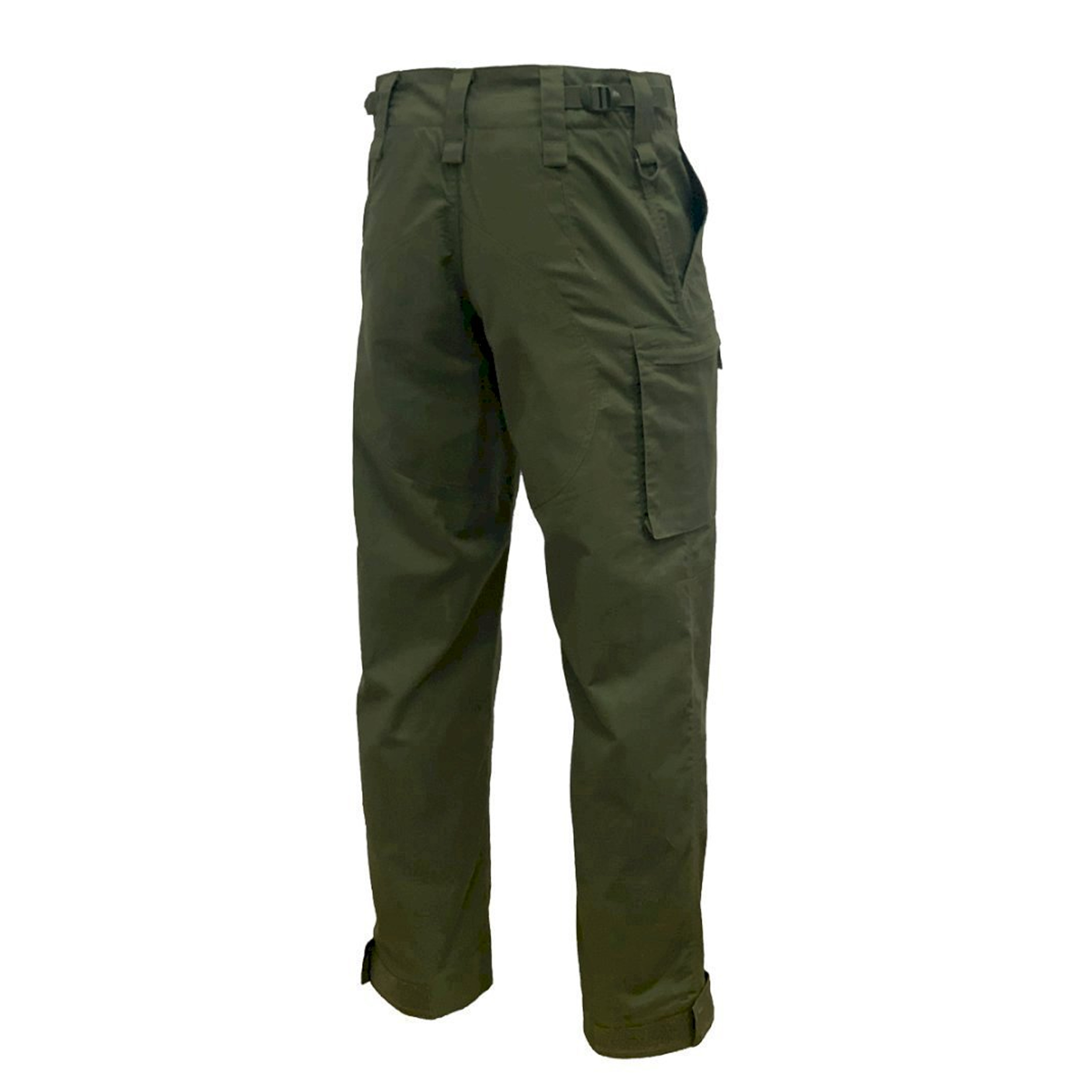Konstrukcja spodni została zaprojektowana tak, aby sprostać intensywnemu użytkowaniu. Wzmocnienia na pośladkach, kroczu i kolanach zapewniają długą żywotność, a jednocześnie zwiększają komfort noszenia. Spodnie posiadają regulację w pasie za pomocą solidnych ściągaczy z klamrami, co pozwala na idealne dopasowanie do sylwetki i pełną swobodę ruchów. Nogawki zakończono regulowanymi rzepami, co umożliwia dopasowanie do obuwia i ochronę przed przedostawaniem się niepożądanych elementów terenu.