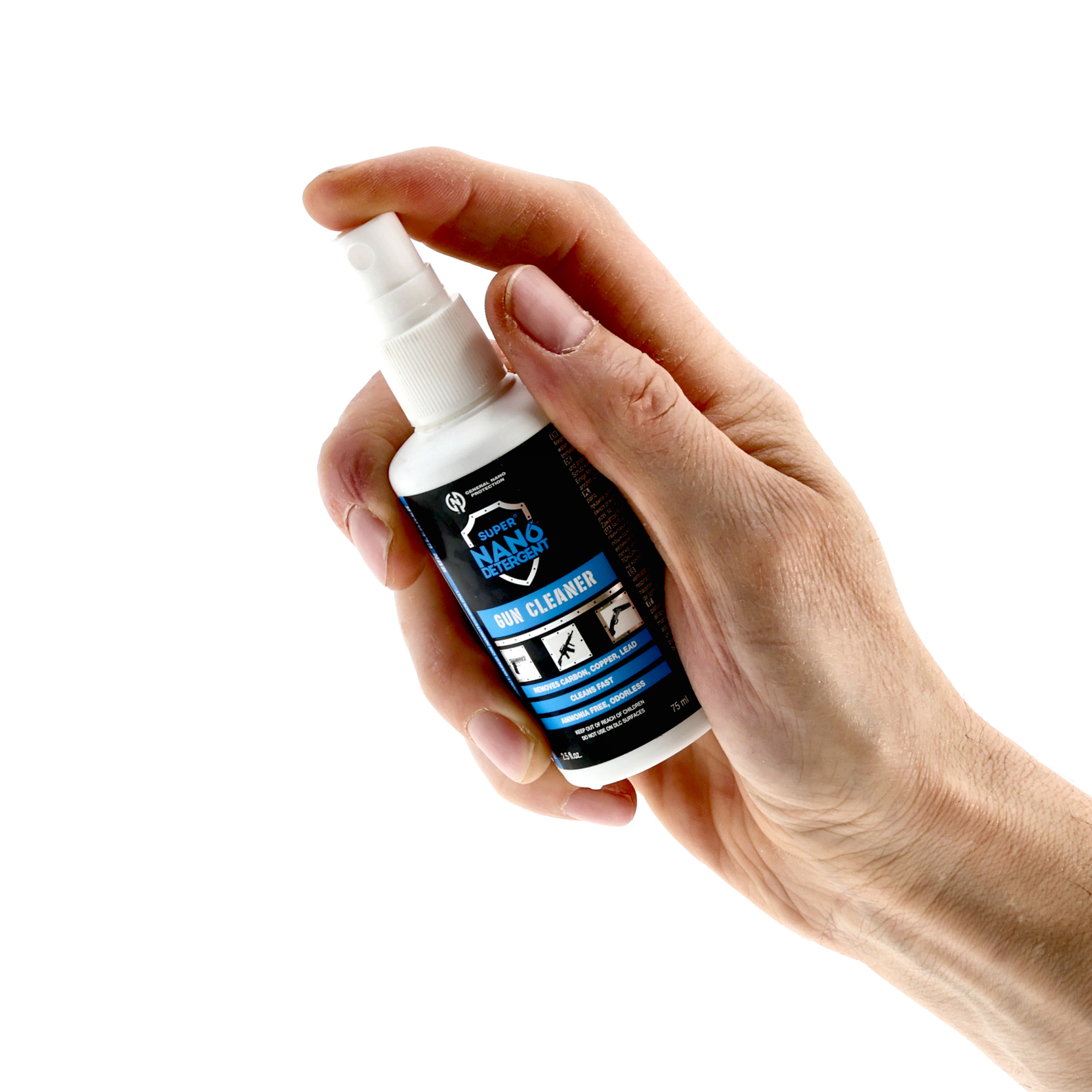 Super Nano GUN CLEANER to zaawansowany środek czyszczący, który szybko i skutecznie usuwa brud, nagar i smary, ołów, miedź, cynk, doskonale penetruje i tworzy niewidoczną powłokę olejową, która gwarantuje długotrwałą ochronę przed wilgocią, tarciem i zużywaniem materiału. Preparat jest bezpieczny dla stali, niklu, chromu, gumy, tworzywa, aluminium, drewna i powłok lakierniczych.