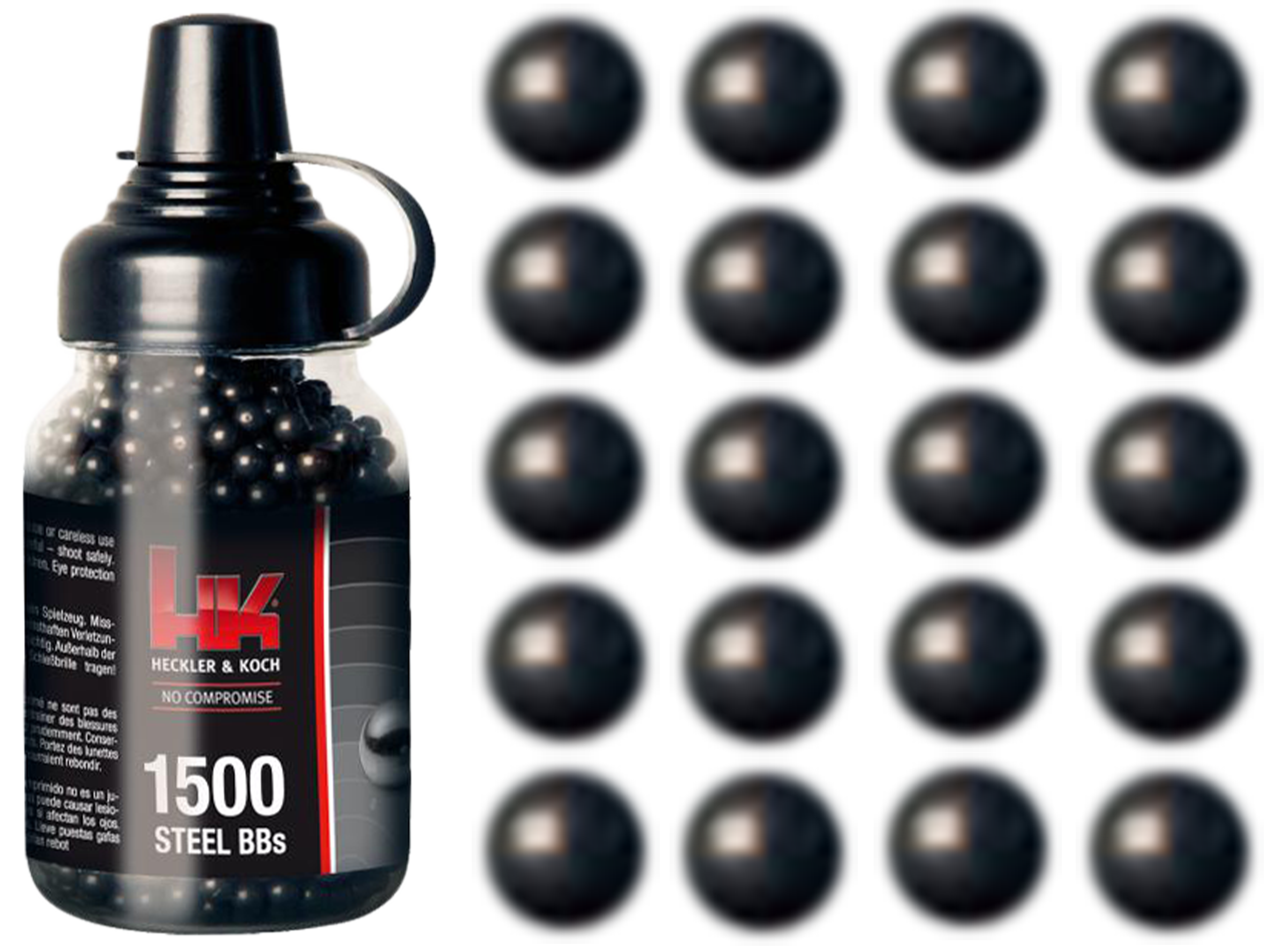 Śrut BBs Heckler&Koch 4,5/1500 Premium to wysokiej jakości kulisty śrut stalowy przeznaczony do wiatrówek z gładką lufą.